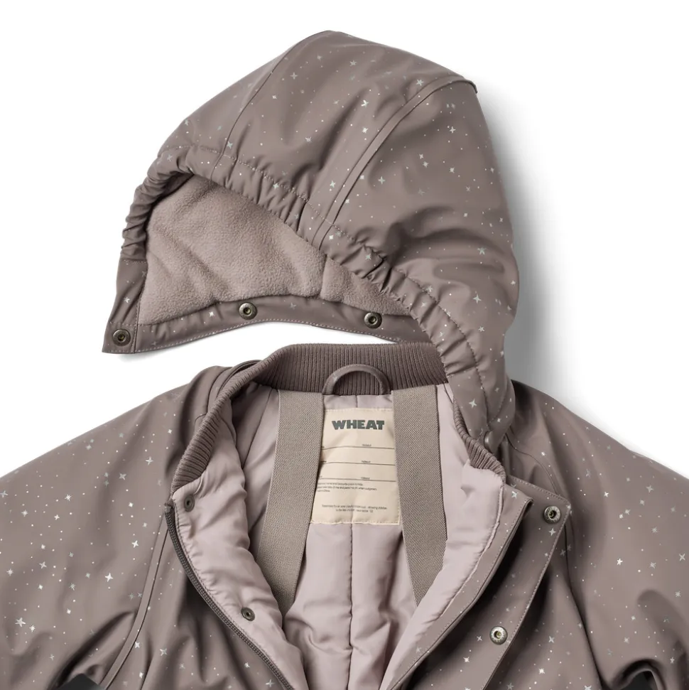 Skøn og uundværlig vinterdragt med print til børn. Den er åndbar, vandtæt og varm, da det er den perfekte kombination mellem en regndragt og en flyverdragt. Wheats vinterdragter er en perfekt blanding mellem den velkendte regndragt og flyverdragt. Denne dragt har en tykkere vinterpolstring, som gør den varm på selv de koldeste og vådeste vinterdage. Vinterdragten er lavet i åndbart polyurethan (PU) materiale og er derfor ganske unik, da den kan holde dit barn både tørt og varmt på én og samme tid.