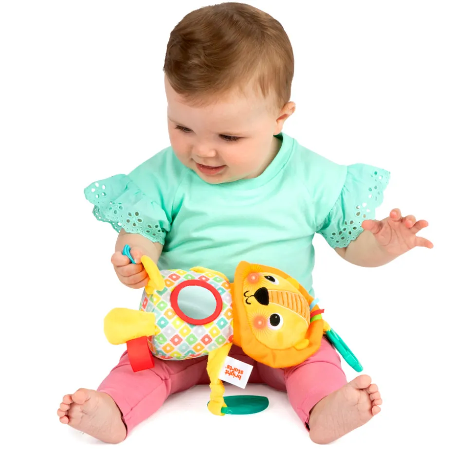 Søde små kram sætter mægtige melodier i gang! Den farverige lysende elefant til nyfødte fra Bright Starts er med til at fremme udviklingen af din babys motoriske færdigheder, idet den motiverer barnet til at række ud efter legetøjet, trække i det samt puffe til det. Når babyen giver sin junglevens mave et kram, afspiller løven 13 forskellige melodier og lyser op. Sikken stor overraskelse for de små!