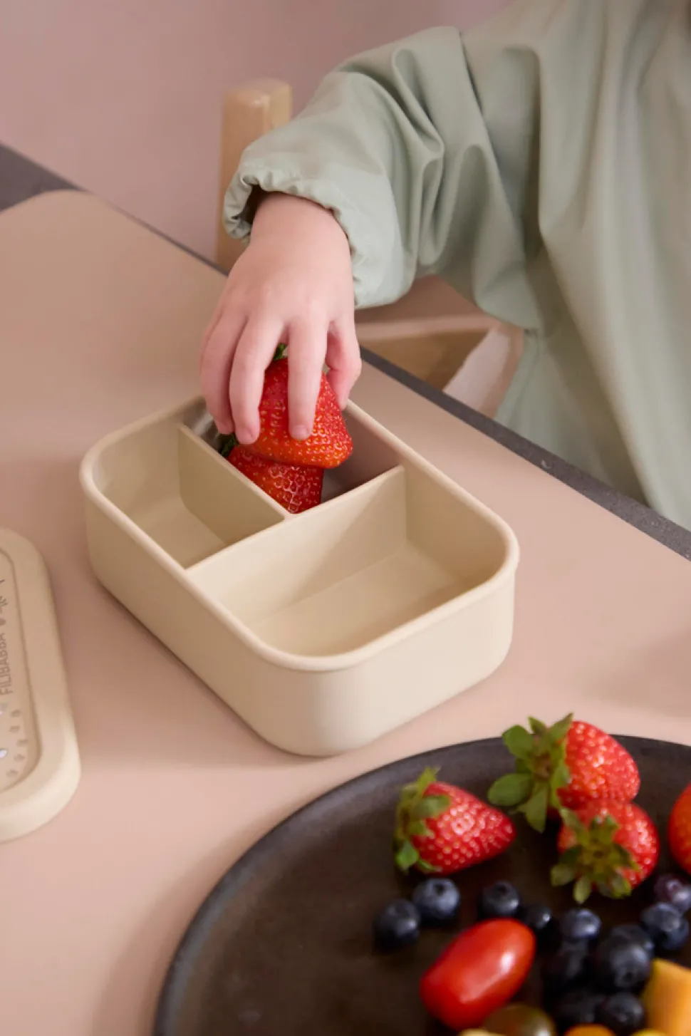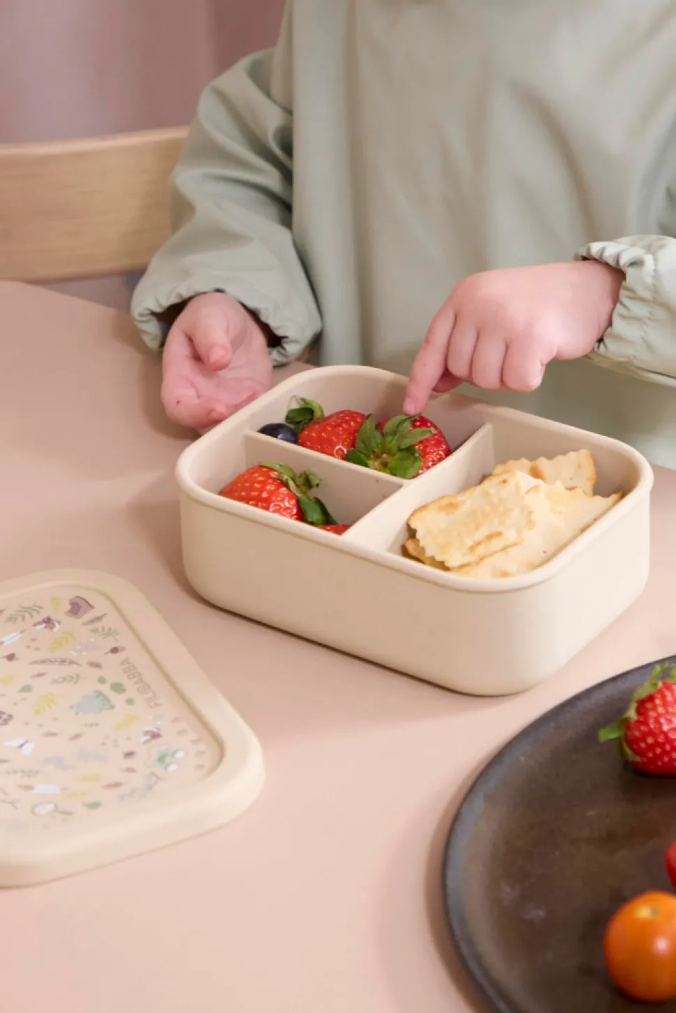 Sød og praktisk madkasse i 100% fødevaregodkendt silikone. Med sin størrelse på 700 ml er der masser af plads til snacks. Madkassen er opdelt i 3 mindre rum, så maden kan forblive adskilt, som mange børn foretrækker.