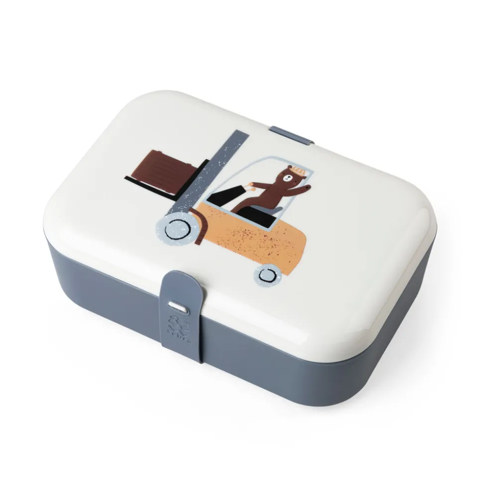Børnemadkasse med illustrationer fra Sebras tema Busy Builders – et byggeunivers fuld af sjov, aktivitet og begejstring over i fællesskab at få tingene til at ske og skabe noget stort. Match madkassen med drikkedunken, som også hører til Busy Builders kollektionen. Madkassen kommer med en løs beholder med 2 rum, der fungerer som en rumdeler, hvilket gør det lettere at holde forskellige typer mad adskilt og dermed mere friskt og indbydende. De 2 rum er ideelle til nødder, grønsager eller andre snacks. Dette gør madkassen ekstra velegnet til at medbringe måltider til vuggestuen, børnehaven, skolen eller endda til en picnicudflugt. Bundens smukke, støvede blå farve komplimenteres af lågets flotte print med en Busy Builder, der glad vinker til dig fra sin truck.