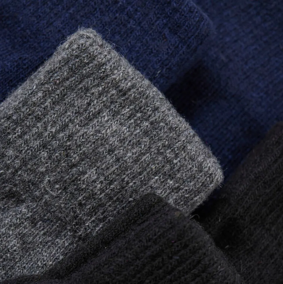 Praktiske strikhandsker med rib om håndleddet. Fingerhandskerne er ensfarvede. De er lavet med uld og masser af stræk, så de er behagelige og varme at have på.