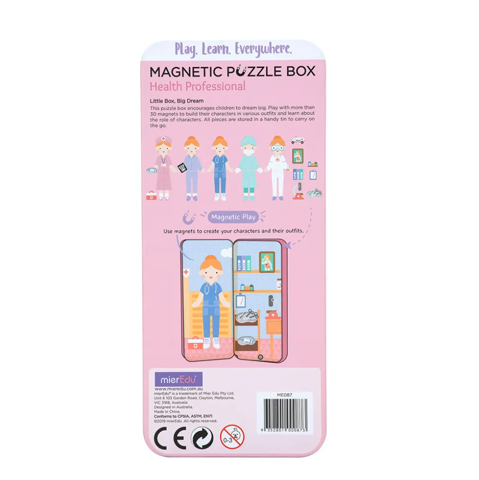 Dette magnetiske legesæt med sundhedsarbejder-tema indeholder to baggrunde og mere end 30 magnetiske brikker til at sammensætte sin egen figur og finde på sjove historier.