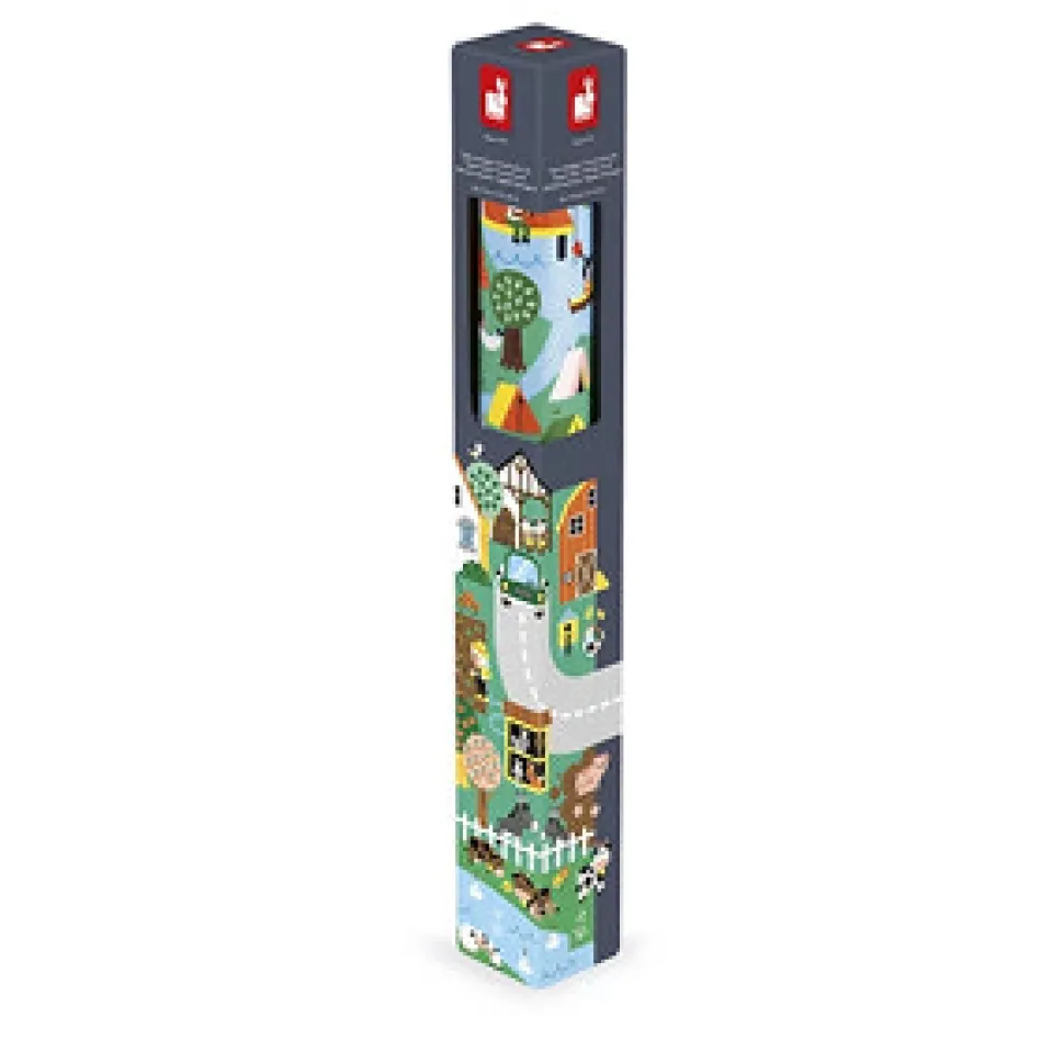 Dette legetæppe er perfekt til børn fra 2 år og opefter. Det har en bred, lang vej, så du kan tage nøglen til markerne og forestille dig endeløse historier. På deres legetæppe med bane nyder de små at følge de snoede landeveje på jagt efter skjulte elementer, som i et søg-og-find spil. De vil opdage ulven i skoven, landmanden på sin traktor og blive underholdt af de små ænder, der krydser floden. Der er så mange bygninger, dyr og karakterer repræsenteret.