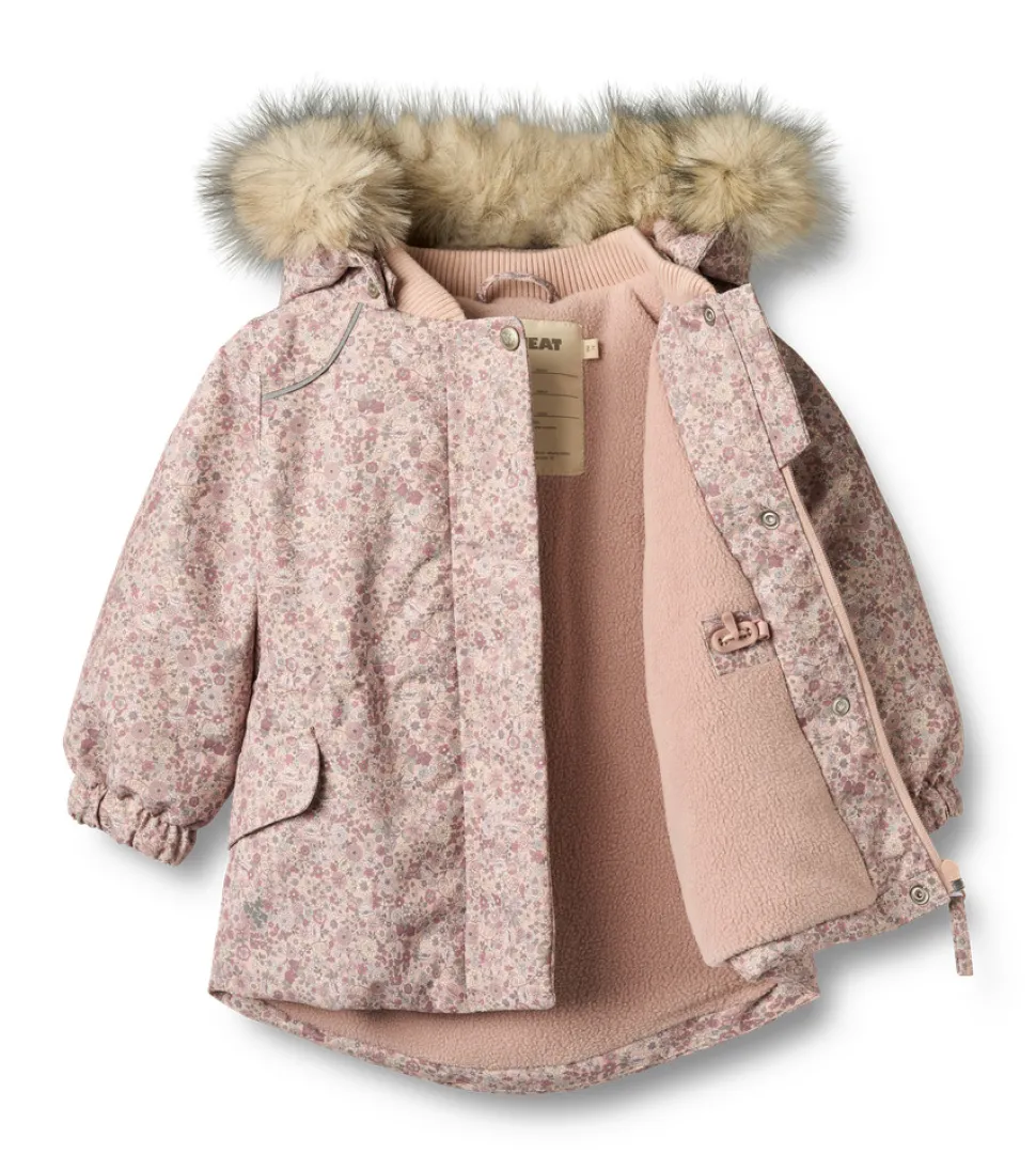A-formet jakke med print i vandtæt- og åndbart materiale til din baby. Wheats jakke er lavet i åndbart, vind- og vandtæt materiale, og er perfekt til de mange kolde efterårs- og vinterdage. Den er designet med høj performance og komfort for øje, da materialet er slidstærkt og smudsafvisende og derfor nemt at rengøre og vedligeholde.