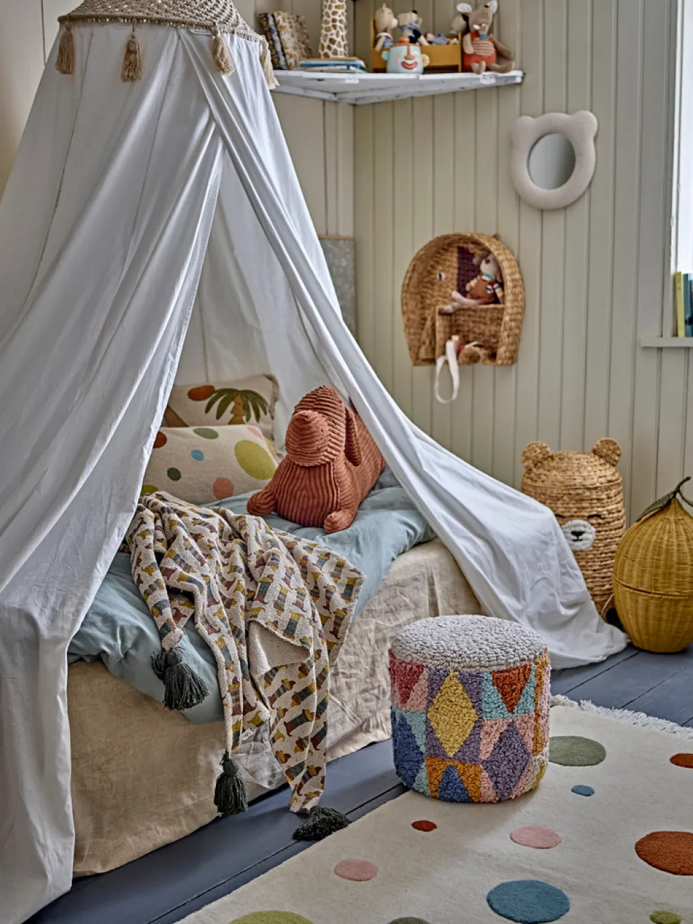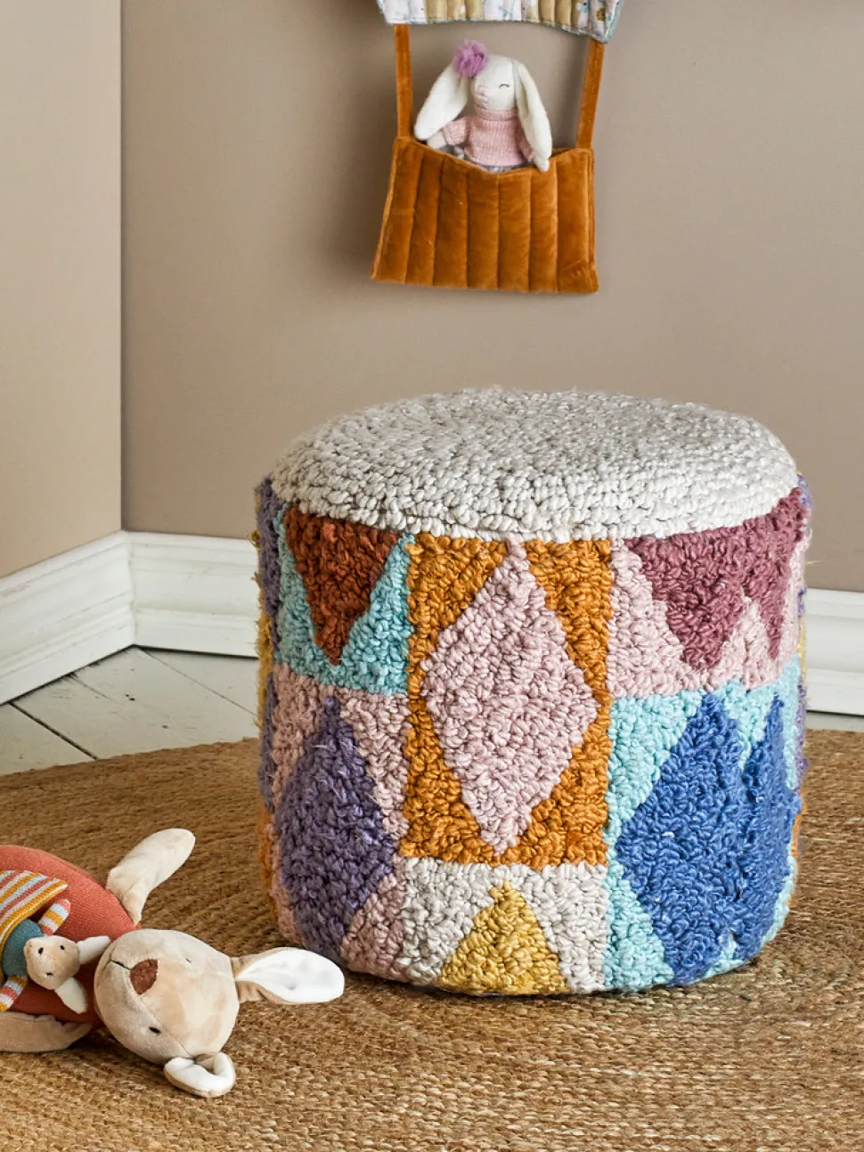 Miaki Puffen fra Bloomingville MINI er en blød tuftet puf i glade farver. Den bringer et legende og hyggeligt udtryk til børneværelset, fungerer som en ekstra siddeplads i stuen for de mindste, eller endda som en behagelig fodskammel til lænestolen.