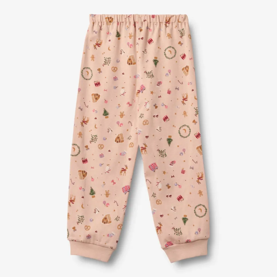 2-delt pyjamas med julemotiver i blødt økologisk bomuld til børn. Wheats charmerende pyjamas med julemotiver er skabt til at sprede magisk julestemning. Med sin bløde pasform er den både let og behagelig for dit barn at have på hele dagen.Det bløde nattøj er behageligt at have på og er perfekt til de kolde efterårs- og vinternætter. Pyjamassættet kommer med matchende T-shirt og bukser. T-shirten er simpel og langærmet, hvor bukserne har en blød elastik i taljen.