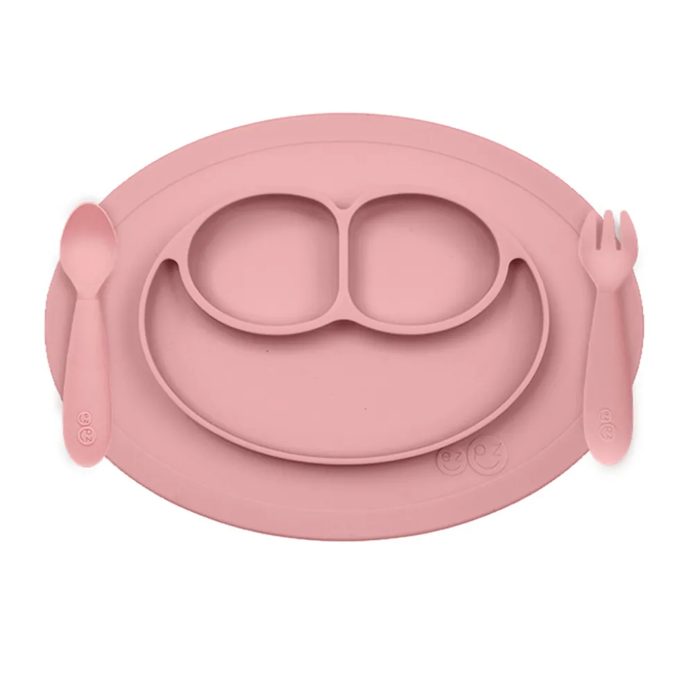 EZPZ Mini Foods Sæt, hjælper barnet med at spise selv. Ruminddelt tallerken med dækkeserviet, som beskytter bordet og samtidig suger sig helt fast til plan overflade, så tallerken ikke kan tippes eller væltes. Med Mini Feeding Sæt (Mini Mat, Mini Spoon og Mini Fork) giver EZPZ alle de udviklingsværktøjer, der er brug for, til uafhængig måltider for barnet. Kompatibel med minimåttelåget.