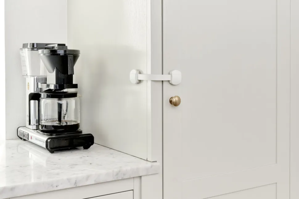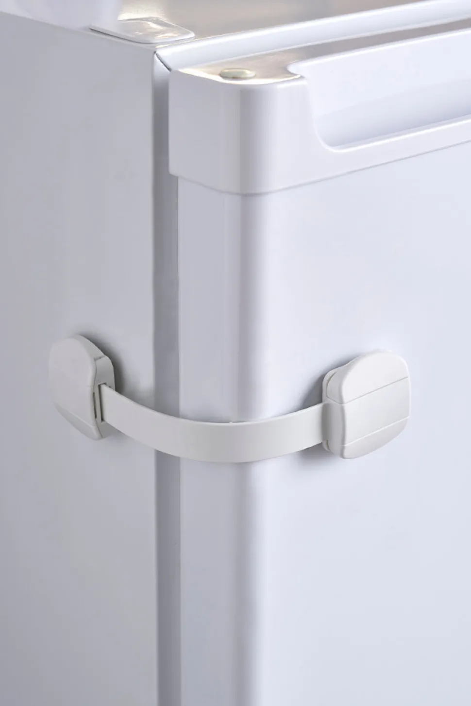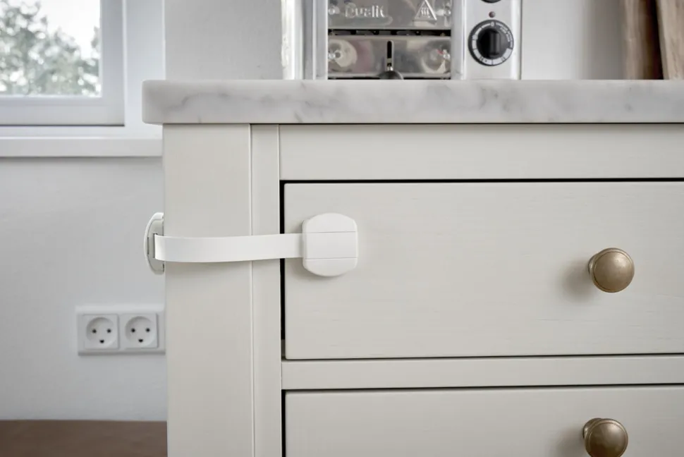 Fleksibel og justerbar – Disse børnesikrede skabslåse har stropper, der