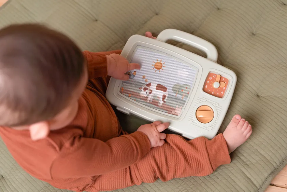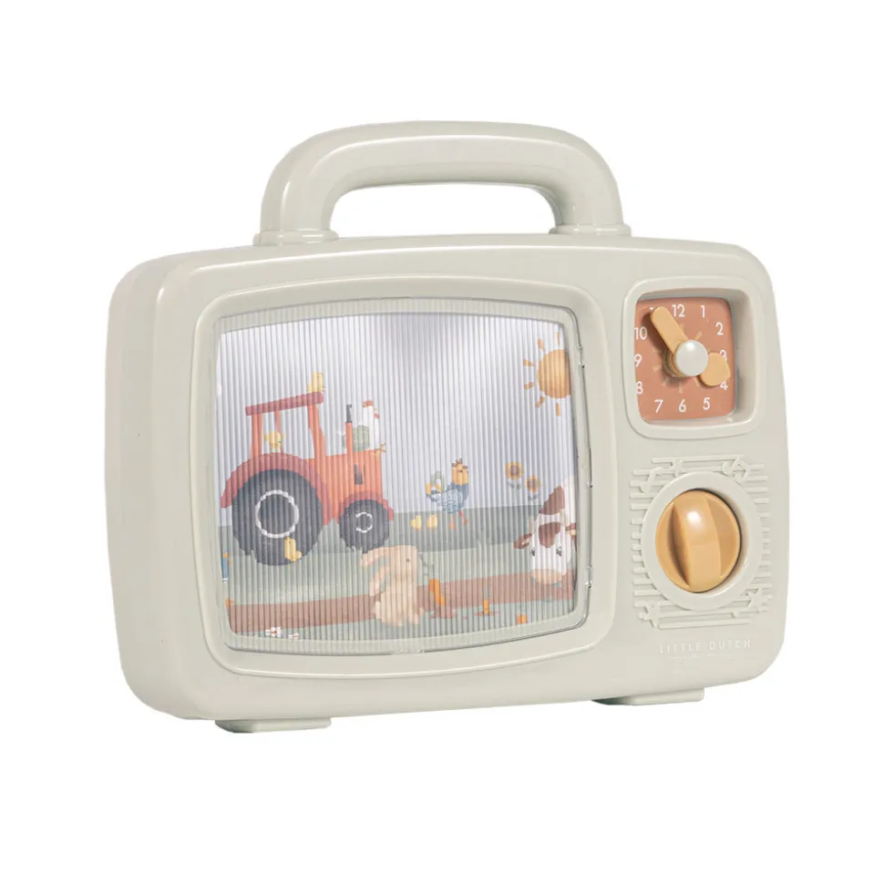 Drej på knappen på dette søde Little Dutch Musik TV, og billedet skifter langsomt, mens du hører munter musik. Se husdyrene fra Little Dutch Farm-serien