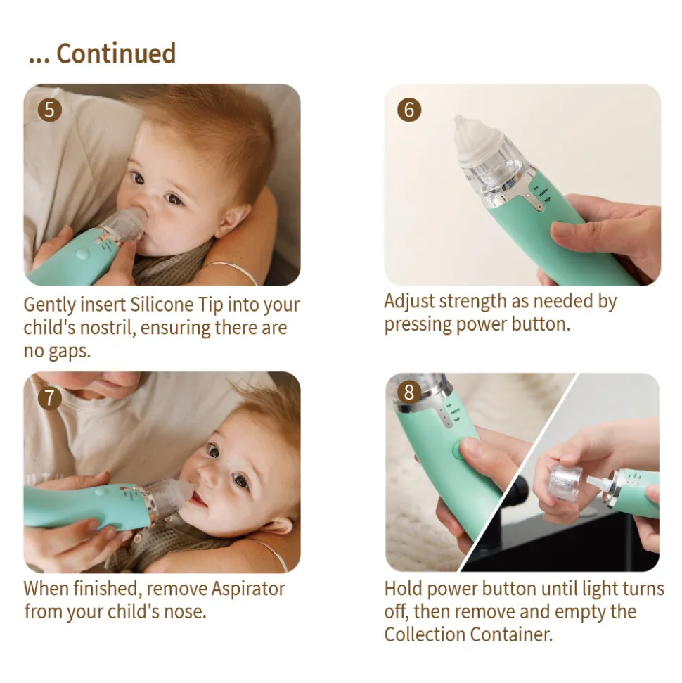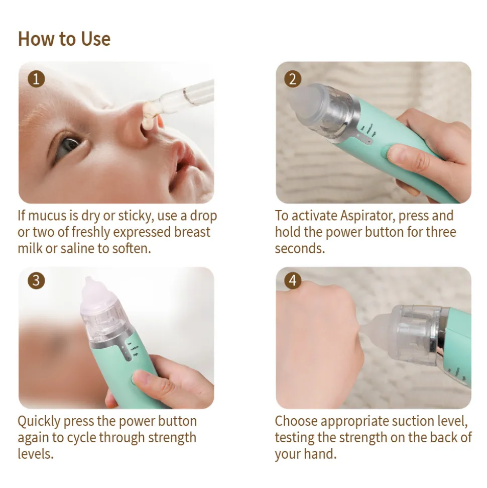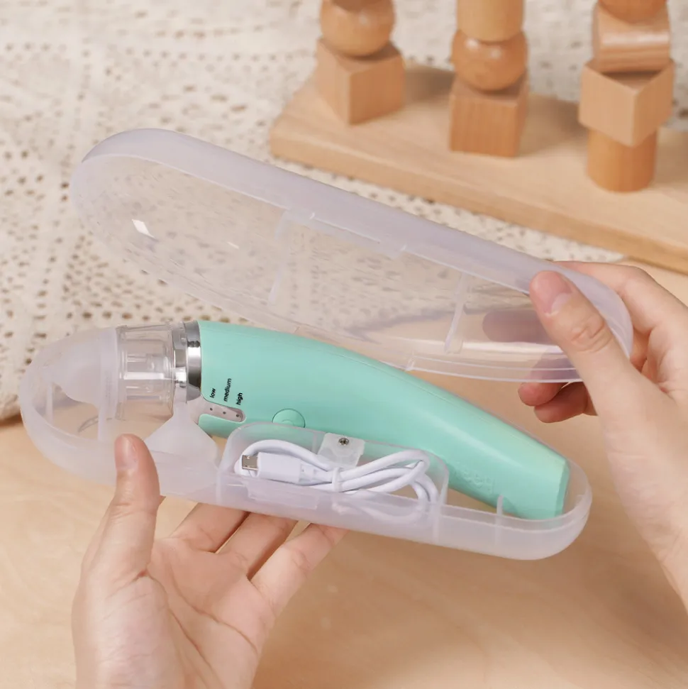 Denne genopladelige næseaspirator giver kontinuerlig sugning uden tilbagestrømning og er nem at skille ad når den skal rengøres, hvilket gør den perfekt til travle familier. Den leveres endda komplet med en lille rensebørste, så du nemt kan rengøre i alle de små afkroge.