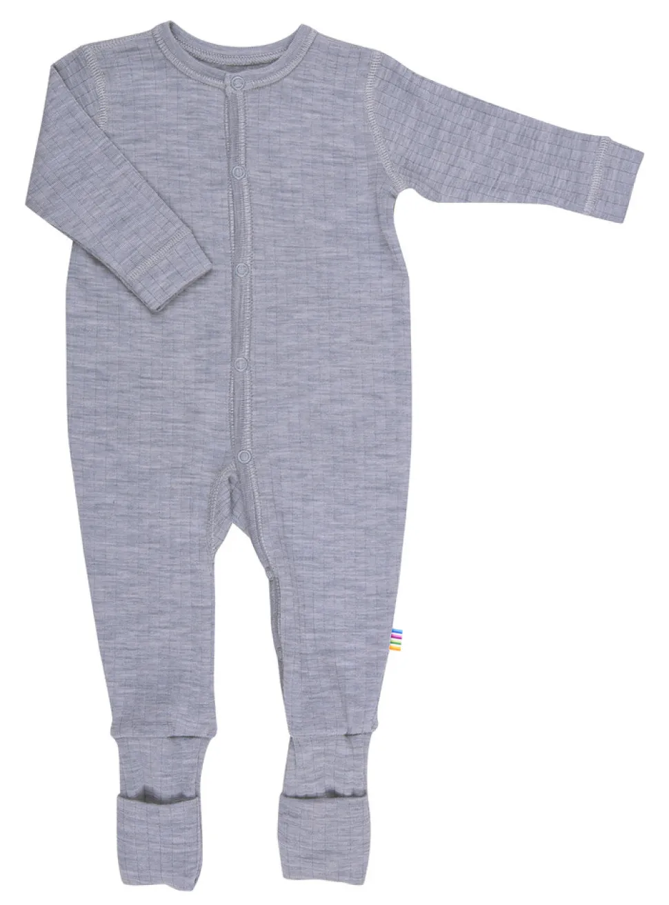 Heldragt med 2 i 1 fod. Lukkes med trykknapper helt ned gennem det eneben. Virkelig en blød, elastisk let uldkvalitet med lodret rille mønster. Kvalitetens strækevne gør at den er behagelig at have på. Ensfarvet. Pure merino wool og Nordic Ecolabel mærket.