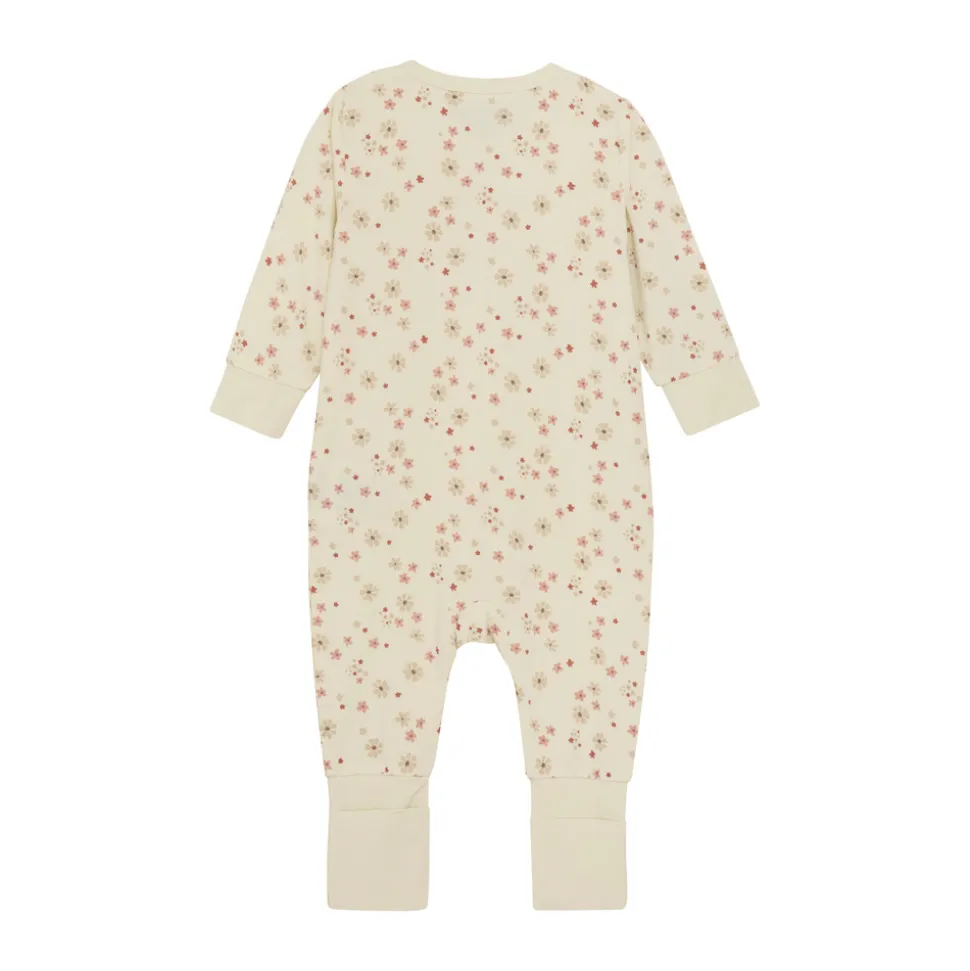 Natdragt fra MINYMO med all-over-print. Natdragten har lange ærmer og ben samt bred ribkant ved håndled og ankler. Ved anklerne kan ribkanten foldes ned. Natdragten er lavet i bambus og lukkes med lynlås fortil.