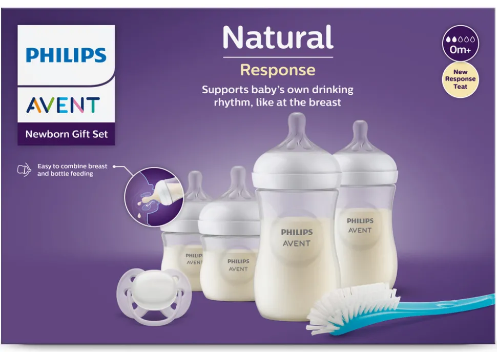 Natural Response Sutteflaske Startsæt, understøtter babys naturlige drikkerytme, 2 x 260 ml., 2 x 125 ml., flaskebørste, Ultra Soft Sut