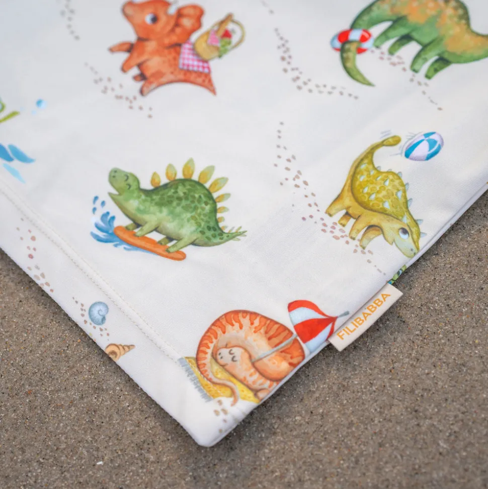 Se lige det søde print! Hvem elsker ikke dinosaurer? “Dino Beach” printet vækker forhistoriske giganter til live. Oplev sjove øjeblikke med en padlende T-Rex, svøm med en plesiosaurus, eller nyd en hyggelig picnic med en triceratops. Med disse kæmpe legekammerater er der altid nye eventyr at udforske.