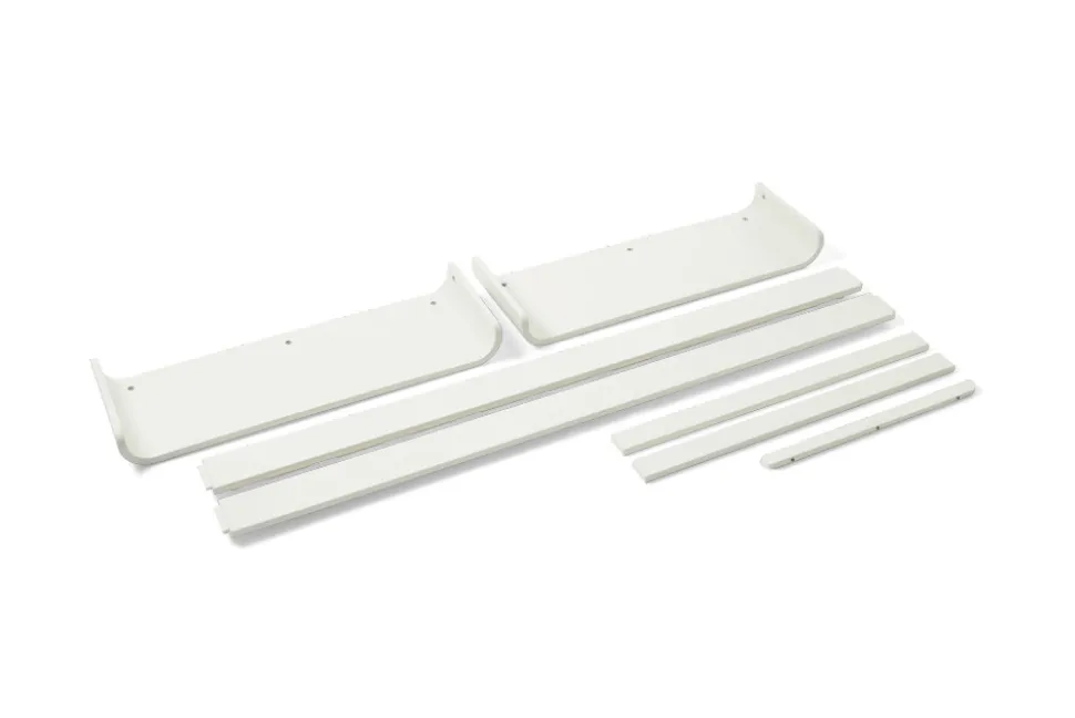 Med dette ombygningssæt kan du forvandle dit barns FLEXA Nova-juniorseng til en større seng med hovedgærde og fodgærde. Sættet indeholder to nye sengesider, to ekstra sengelameller, et hovedgærde og et fodgærde. Alle delene er lette at montere på bunden af dit barns FLEXA Nova-tremmeseng. Med dette ombygningssæt slipper du for at gå ud og købe en helt ny juniorseng til dit barn. Og samtidig mærker dit barn komforten og trygheden i at sove i sin vante seng. For slet ikke at tale om, at når du forlænger levetiden på et kvalitetsmøbel i dit hjem, i stedet for at skifte det ud, så gør du noget godt for miljøet. Ombygningssættet er fremstillet af FSC™-certificeret træ og er en del af FLEXA Nova-kollektionen – en serie af fleksible børnemøbler, der er designet af den prisvindende designer Charlotte Høncke.