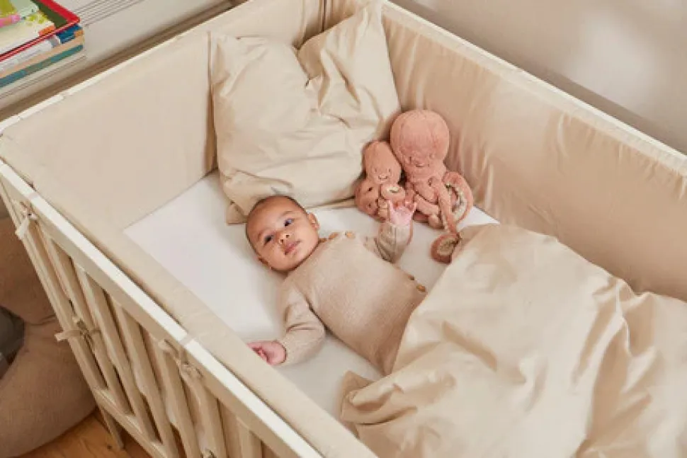 I de første måneder af dit barns liv kan du hæve sengebunden, så du slipper for at bøje dig langt ned, hver gang du skal løfte din baby ind og ud af sengen.