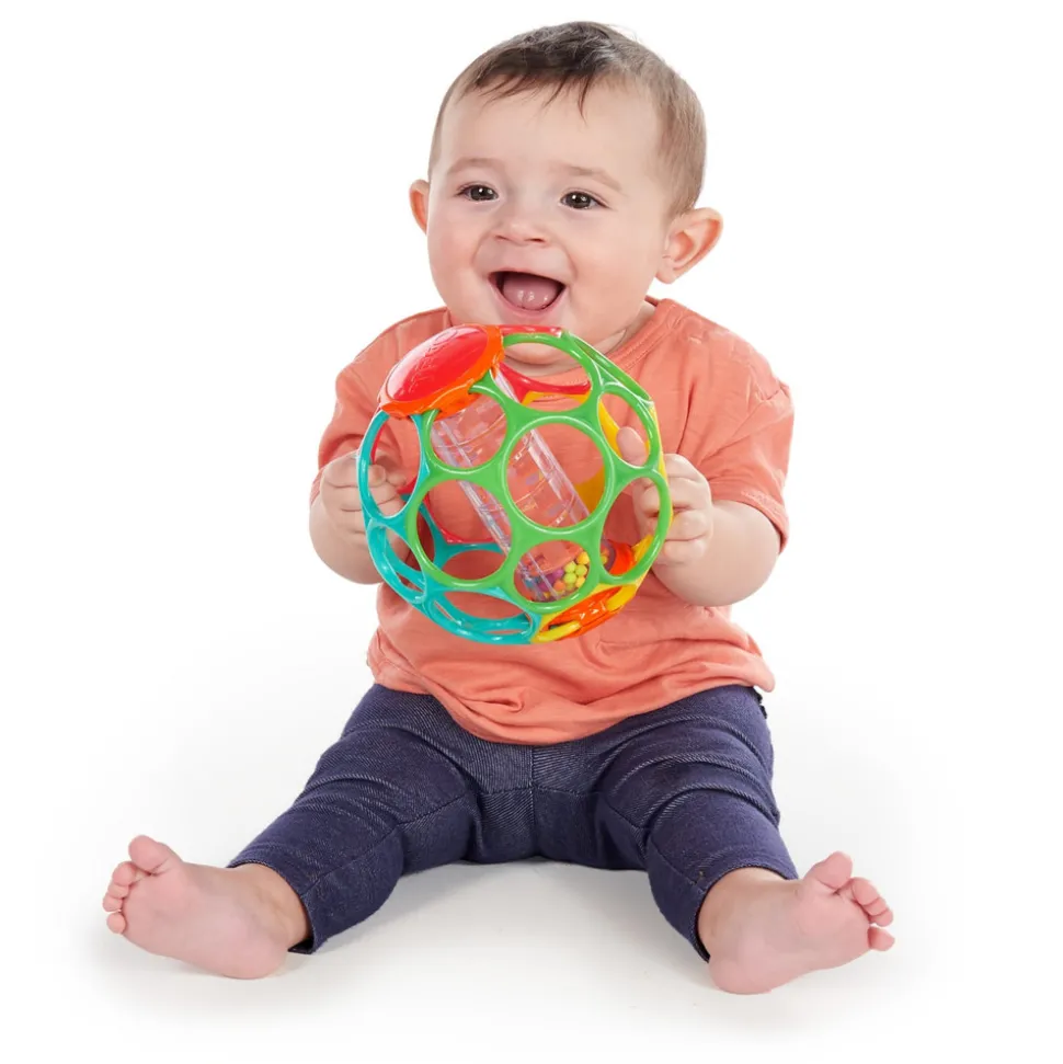 Denne bold er lavet med 30 huller til små baby fingrer, så selv de mindste hænder kan gribe, bøje og ryste bolden. Ved hvert rul vil babyen høre lyden af ranglen, der lyder som regn der falder. Regnbue perlerne i ranglen, vil hjælpe med udviklingen af babyens motoriske færdigheder.