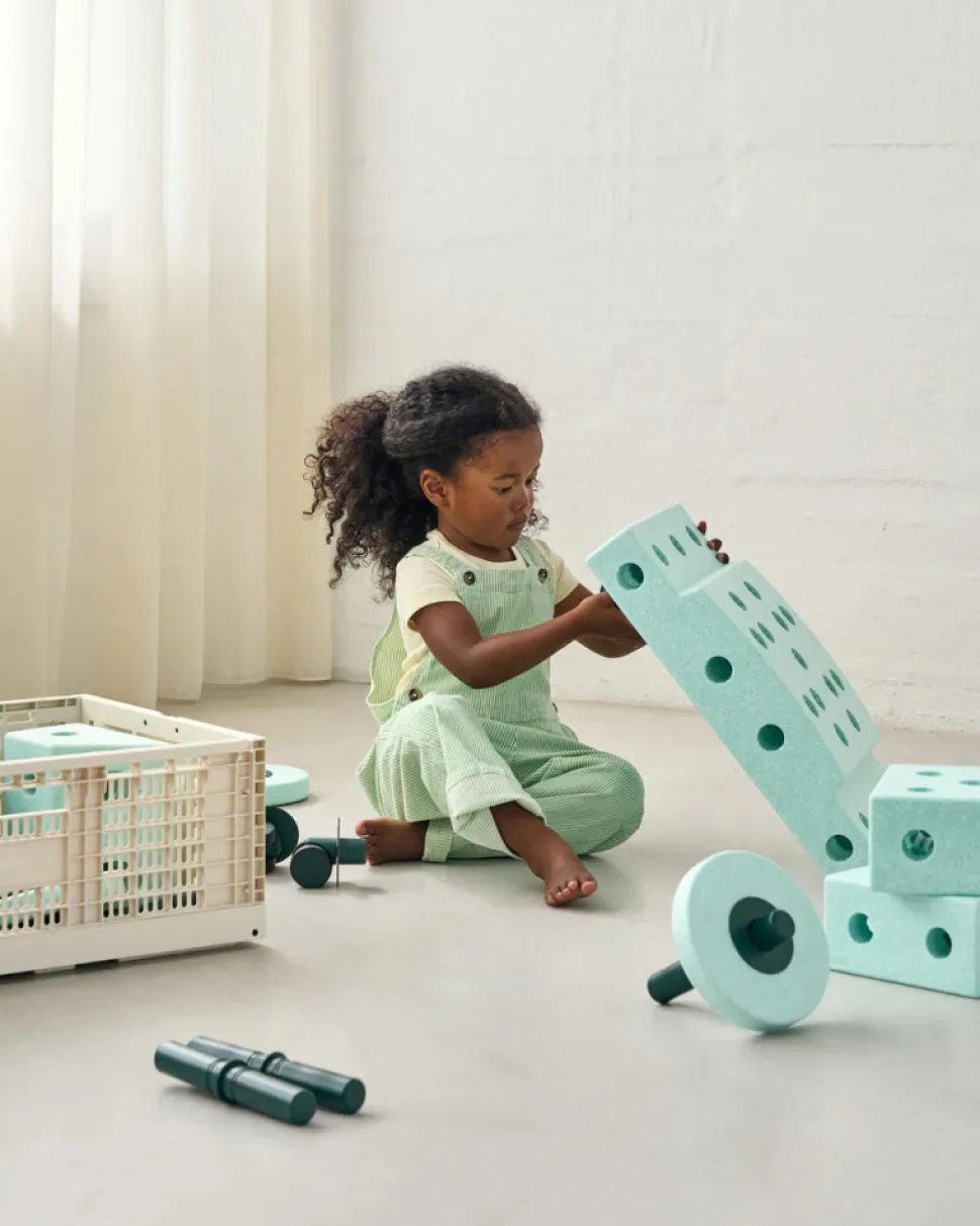 - Tilføj hjul (tilkøb) for ekstra fleksibilitet, og brug de medfølgende etiketter til at holde styr på hvad der er indeni, så I kan nyde et ryddeligt rum – altid klar til det næste store byggeprojekt.