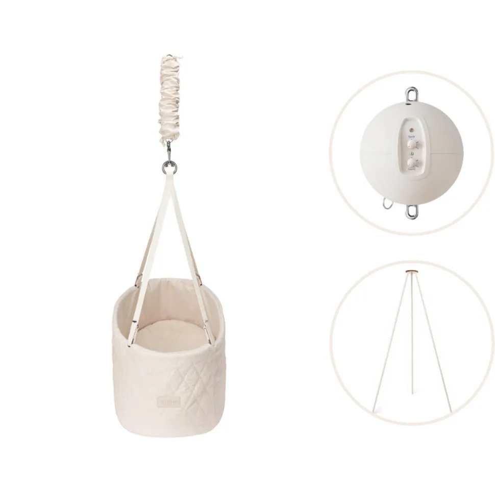 Vuggen: Den ovale vugge er skabt til at give din baby et trygt og komfortabelt sovemiljø. Med dens ovale form, inspireret af traditionelle vugger, skaber den et beskyttet og hyggeligt, men åbent rum, som hjælper din baby med at føle sig sikker og tryg. Vuggens blide gyngebevægelse efterligner de beroligende bevægelser fra livmoderen og virker afslappende, så din baby kan sove mere og bedre. Med en fast, flad bund giver vuggen både komfort og støtte, så din baby kan nyde fredfyldte nætter og rolige lure. Den ovale vugge forener tidløst design med moderne funktionalitet for at give en rolig søvnoplevelse, nat efter nat.