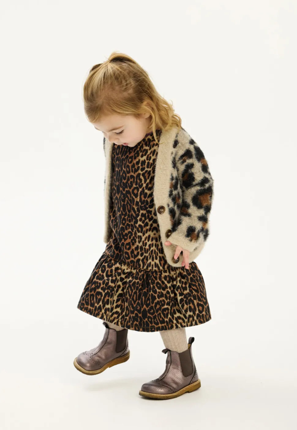 Denne cardigan er både blød og trendy med sit iøjnefaldende leopardmønster. Designet fra THE NEW siblings har en behagelig, afslappet pasform, hvilket gør den perfekt til hverdagsbrug. Den lukkes med tre knapper foran, hvilket giver den et klassisk præg. De ribbede kanter ved ærmerne tilføjer ekstra komfort og sikrer en god pasform. Denne cardigan er ideel til at tilføje et strejf af stil til ethvert outfit og kan nemt kombineres med både bukser og kjoler.