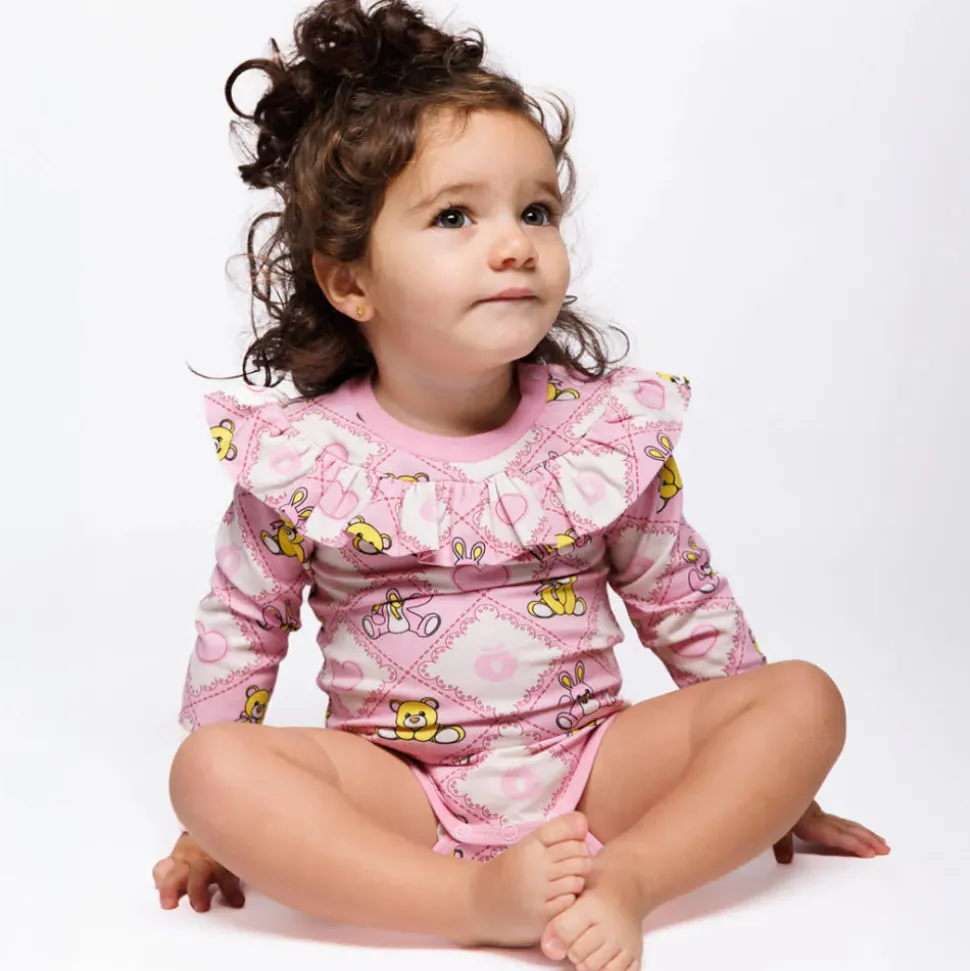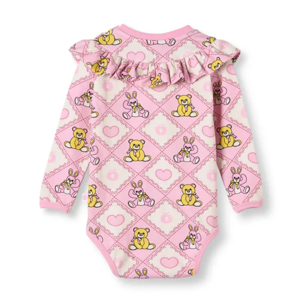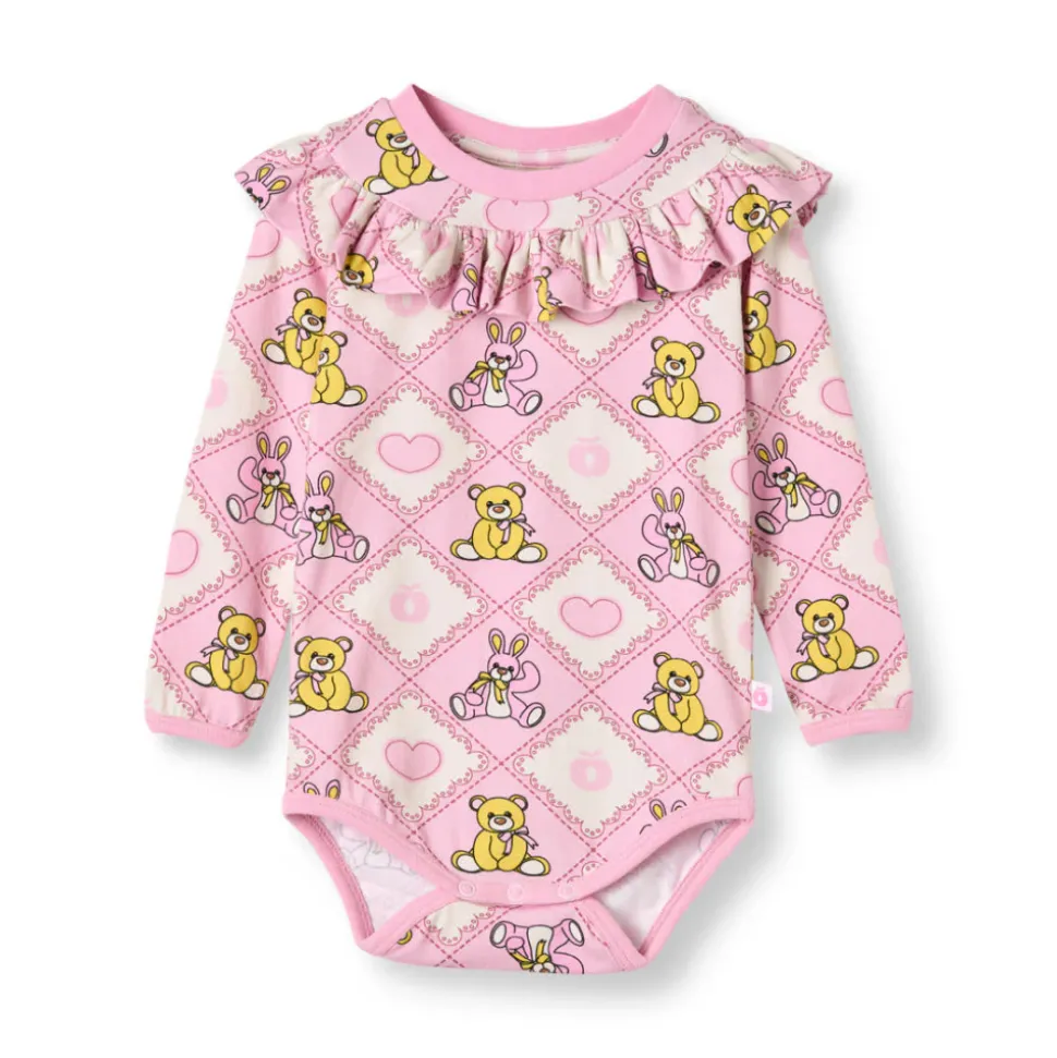 Blød rosa og blonder møder søde bamser i dette yndige print, perfekt til et strejf af tidløs charme. Småfolks print er håndtegnet og designet med fokus på glade farver, detaljer og historier. Småfolk babybodyer er en fantastisk måde at tilføje personlighed til dit barns garderobe, samtidig med at dit barn holder sig komfortabelt hele dagen.