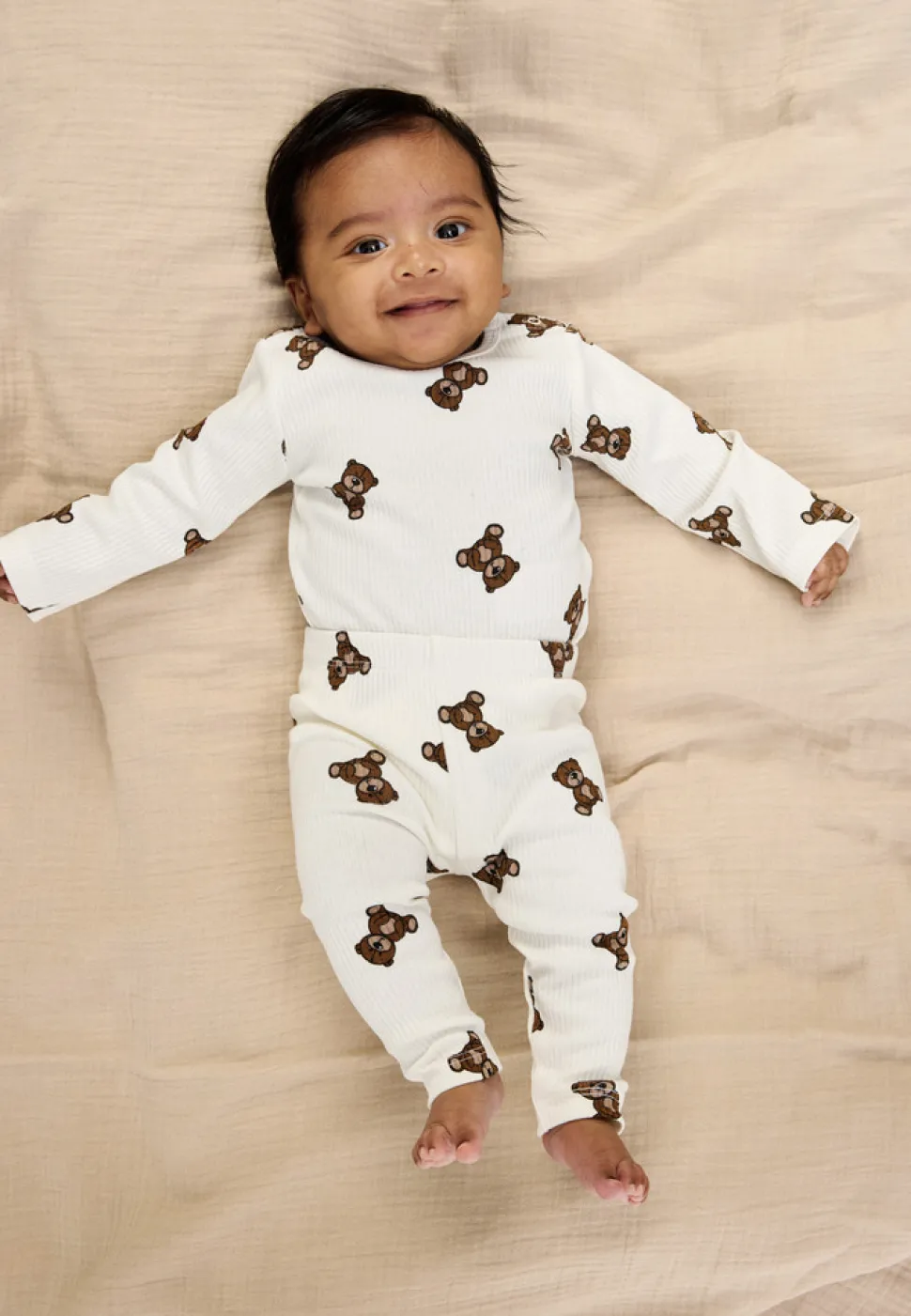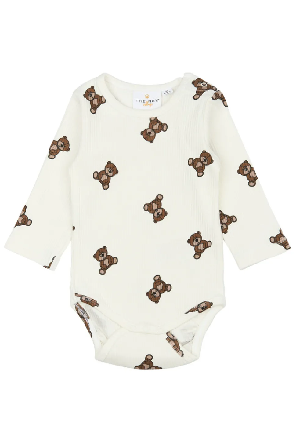 Langærmet ribstrikket bodystocking med et sødt mønster af bamser. Denne charmerende bodystocking fra THE NEW siblings er perfekt til sæsonen og egner sig både til hverdagsbrug og særlige lejligheder.