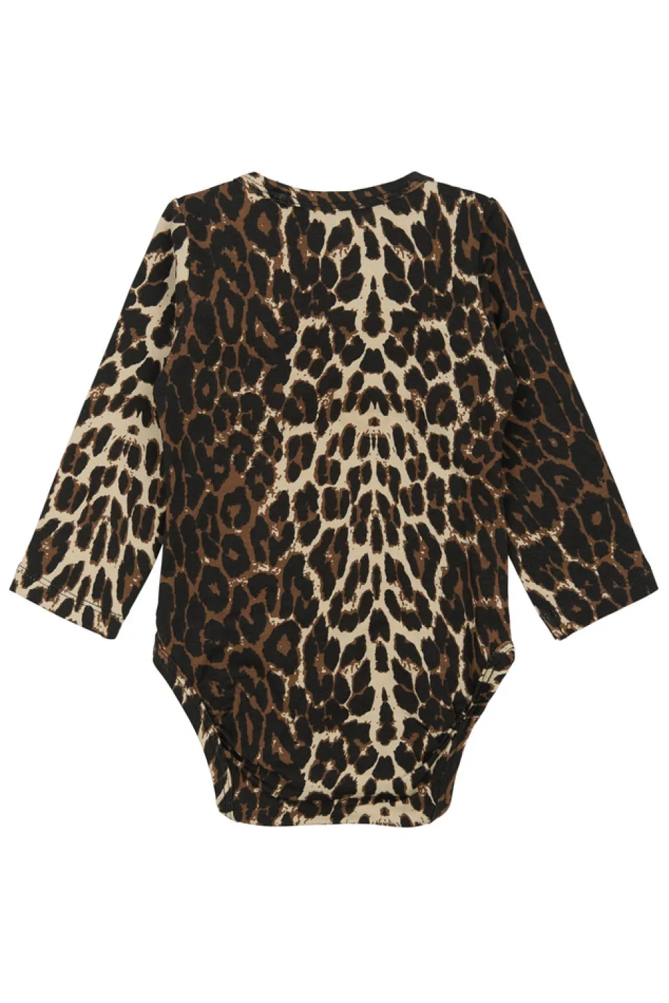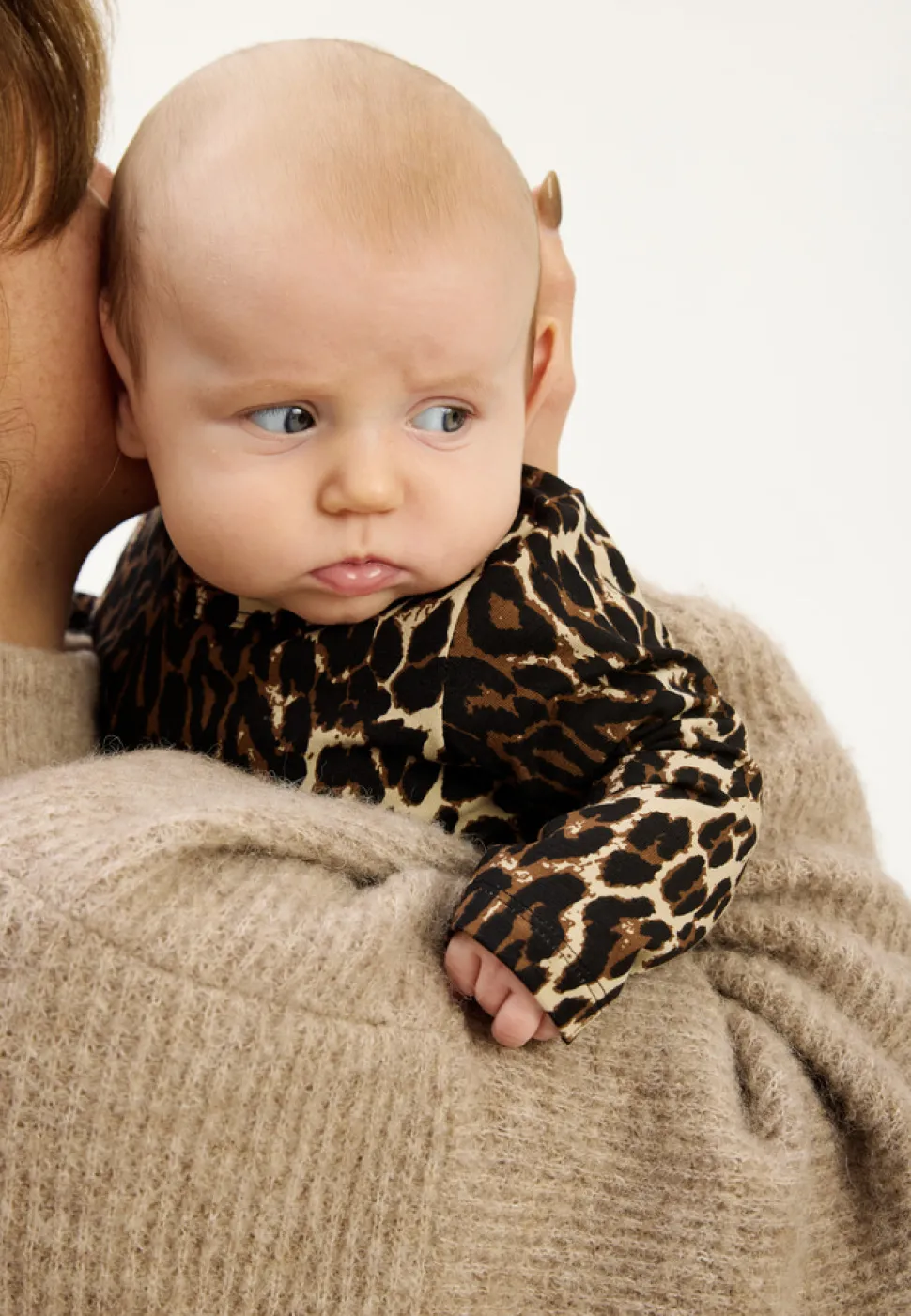 Stilfuld langærmet babystocking i et blødt og strækbart stof med et sejt dyremønster. Denne bodystocking fra THE NEW siblings er let og åndbar, hvilket giver dit barn frihed og komfort til at lege og udforske verden. Uanset om din lille kravler, leger eller danser, er denne bodystocking den perfekte ledsager til nye eventyr.