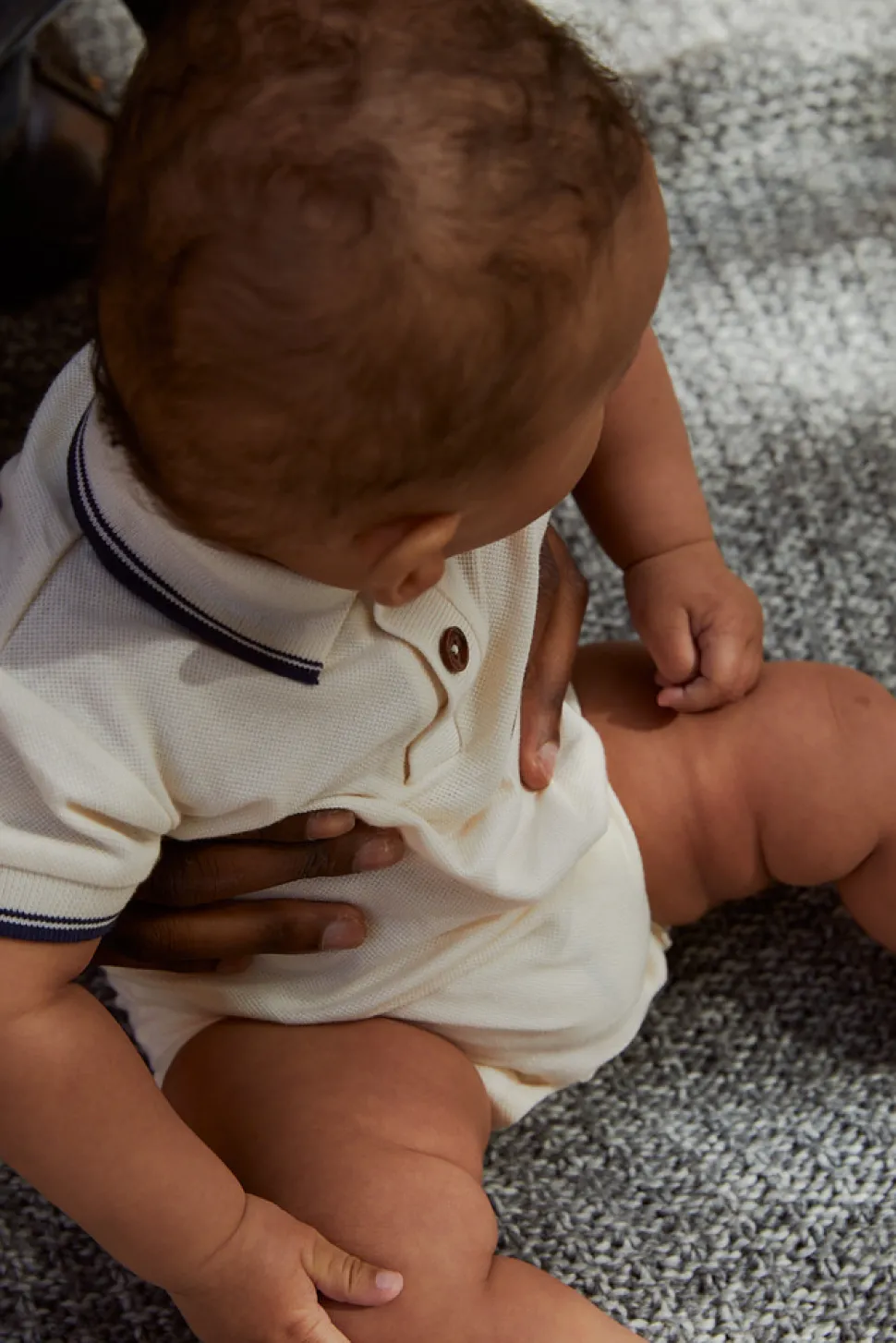 Giv dit barns garderobe et sporty touch med pique polo romper. Denne romper er lavet af blød og åndbar pique-stof, hvilket gør den perfekt til leg og afslapning. Den klassiske polo-krave og knaplukning giver et tidløst look, mens de praktiske trykknapper i bunden gør bleskift nemt. 100% økologisk bomuld.