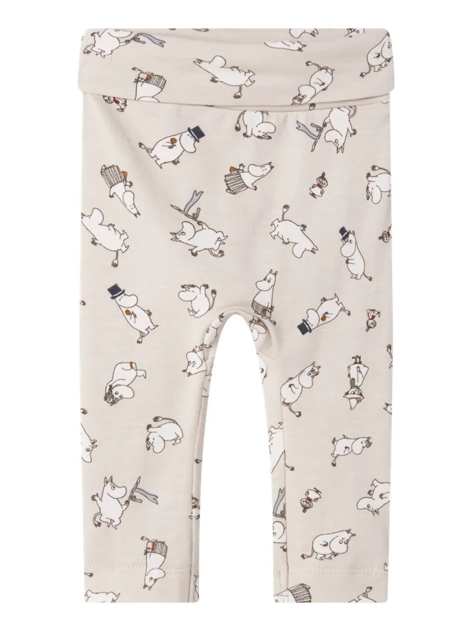 Behagelige bukser til de nyfødte med et sødt Moomin print. Bukserne er både bløde, strækbare og behagelige at have på.