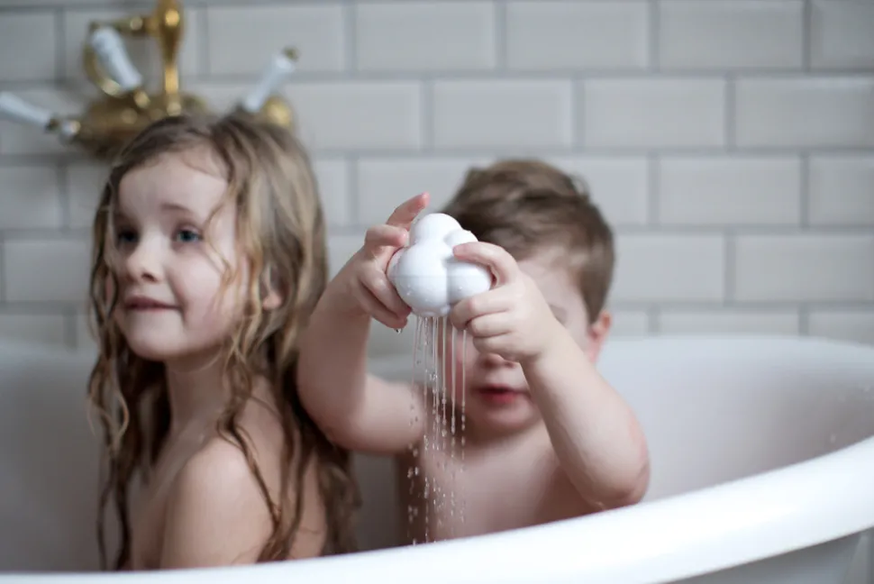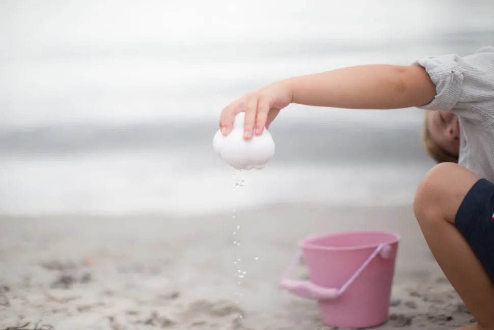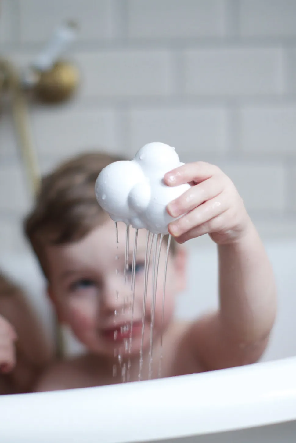 Lille sky hvor barnet let kan starte og stoppe regnen. Skyen fyldes med vand ved at holde det nede i badekarret.