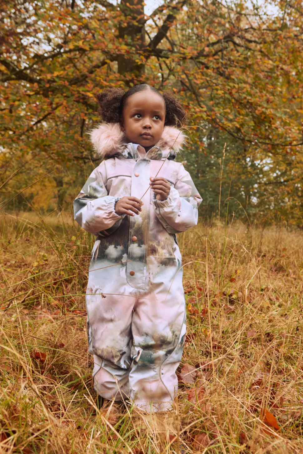 Slidstærk og varm flyverdragt til vinterens udfordringer – fremstillet i genanvendt nylon og designet til at beskytte mod både kulde, vind og vand. Flyverdragten er vind- og vandtæt og har en aftagelig hætte med blødt fleecefor og en aftagelig kant i faux fur. De dobbelte lynlåse foran er udstyret med overfald og hagebeskytter, som skåner barnets hud. Frontlommerne har vindfang og er foret for ekstra komfort.