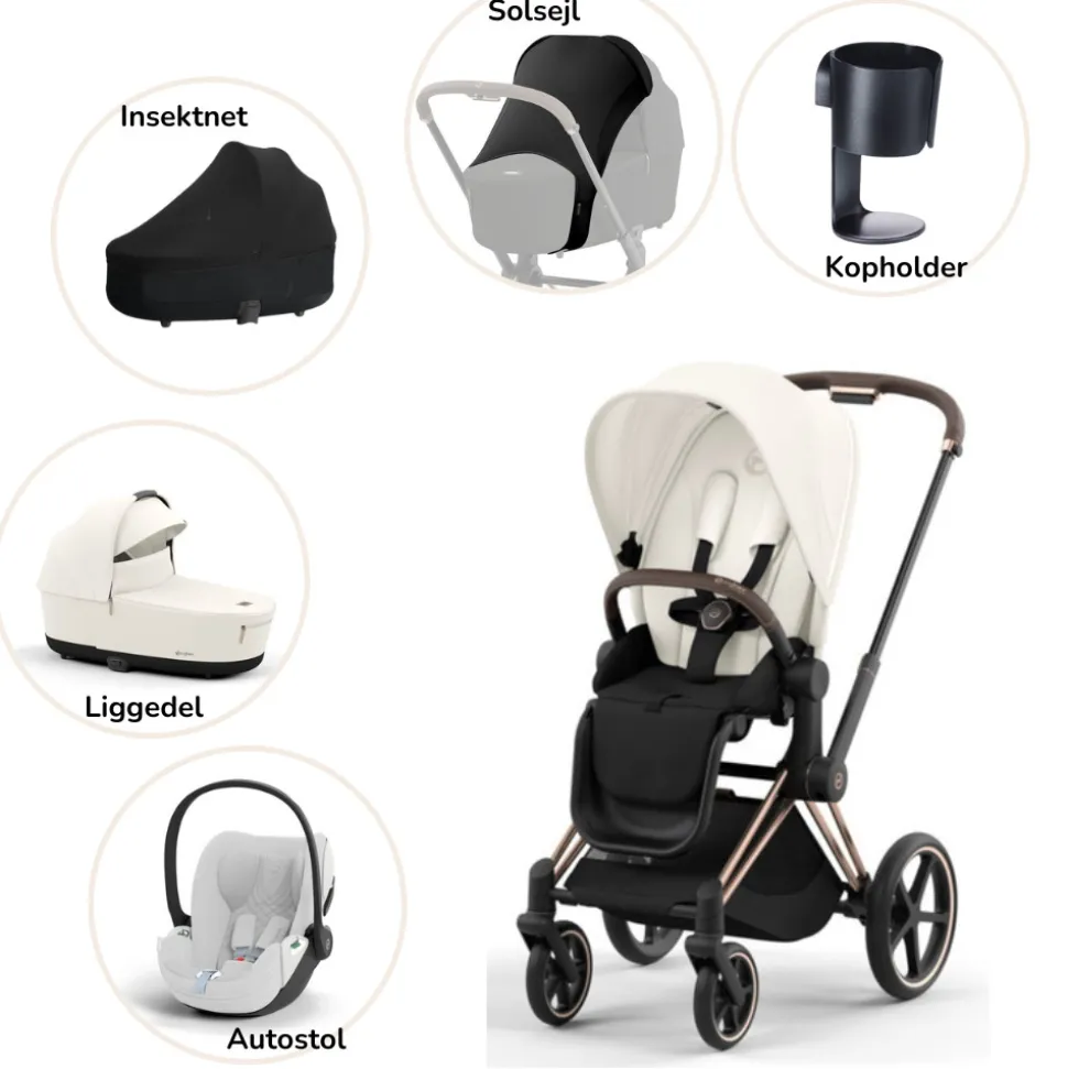 Liggedelen: For maksimal komfort og beskyttelse til din lille nyfødte og til 6 mdr. Du skal blot klikke barnevognskassen på Priam stellet med adaptere, og du er klar til at gå.