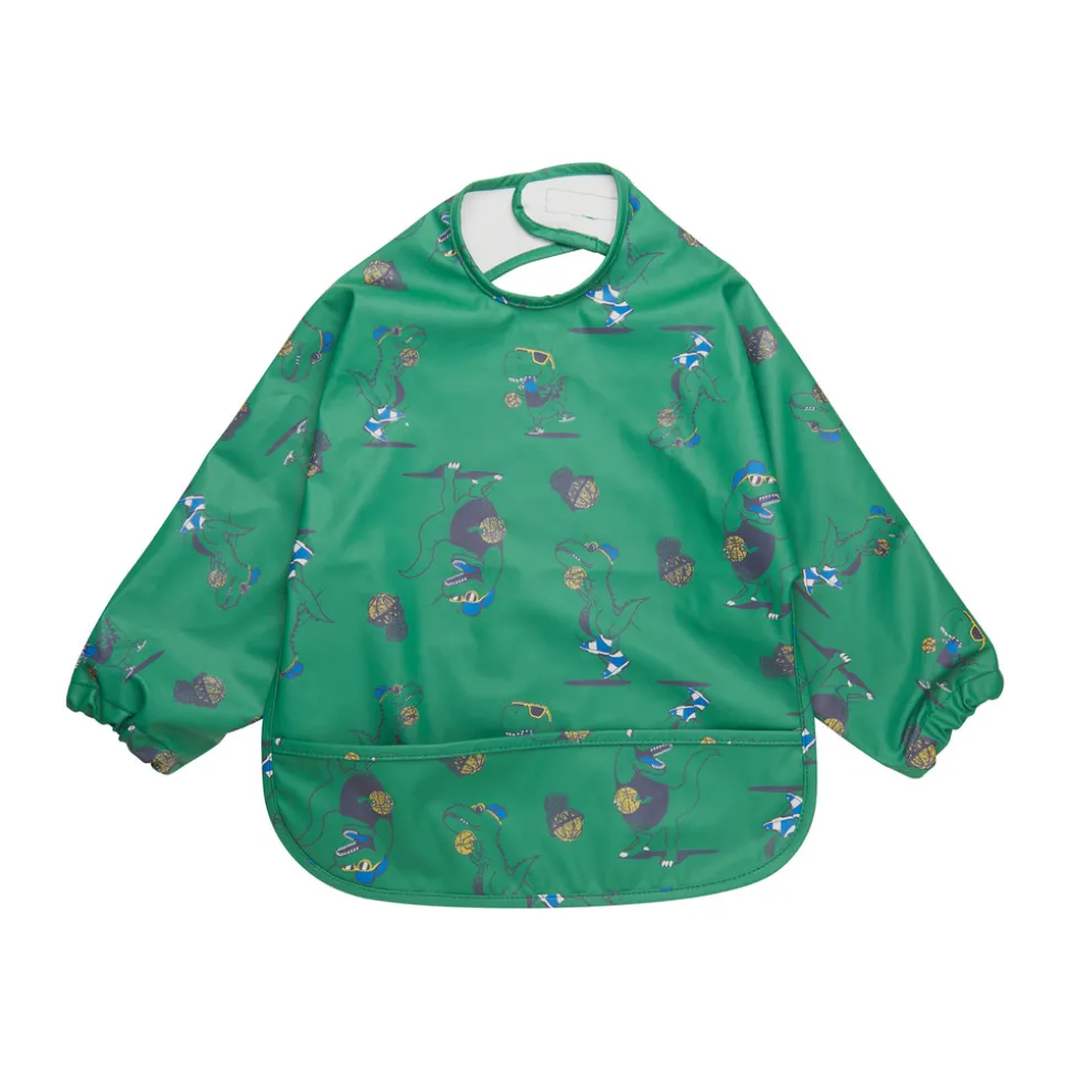 Smart PU-hagesmæk/jakke lavet i recycled materiale. Undgå pletter på dit barns tøj. PU-jakken er utrolig praktisk. Den har velcrolukning i nakken og en opsamlingslomme foran. Praktisk til både spisetid eller ved leg med maling m.m. Med all-over-print.