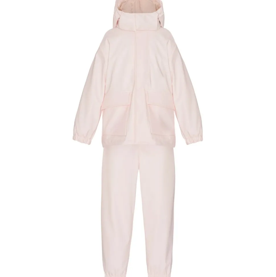 Vores PU-regnsæt er blødt og vandtæt med svejsede sømme. Det er velegnet til leg i vand og regn. PU-belægningen, der er på overfladen, kan ridses og få huller, hvis den gnides mod sand og sten (hårde overflader), eller hvis den bliver revet af grene eller skarpe genstande.