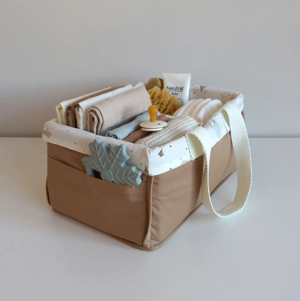 Praktisk opbevaring ved puslebordet til bleer og andre puslenødvendigheder. Perfekt til at skabe orden på puslebordet og super nem at flytte rundt i huset samt tage med på tur eller i sommerhuset.