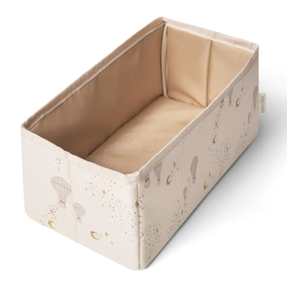 Pusleopbevaringskassen gør det nemt at organisere de ting man har brug for under pusletid. Kassen er perfekt til opbevaring af bleer, cremer, stofbleer og andre pusle nødvendigheder. Opbevaringskassen består af et stort rum samt en lomme i enden. Når du ikke bruger kassen og vil spare plads, kan du åbne bunden og tage den hårde bund ud og folde den sammen. Vask: Tåler ikke maskine vask, tør blot af med en fugtig klud. Længde: 32 cm / Bredde: 15 cm / Højde: 13 cm