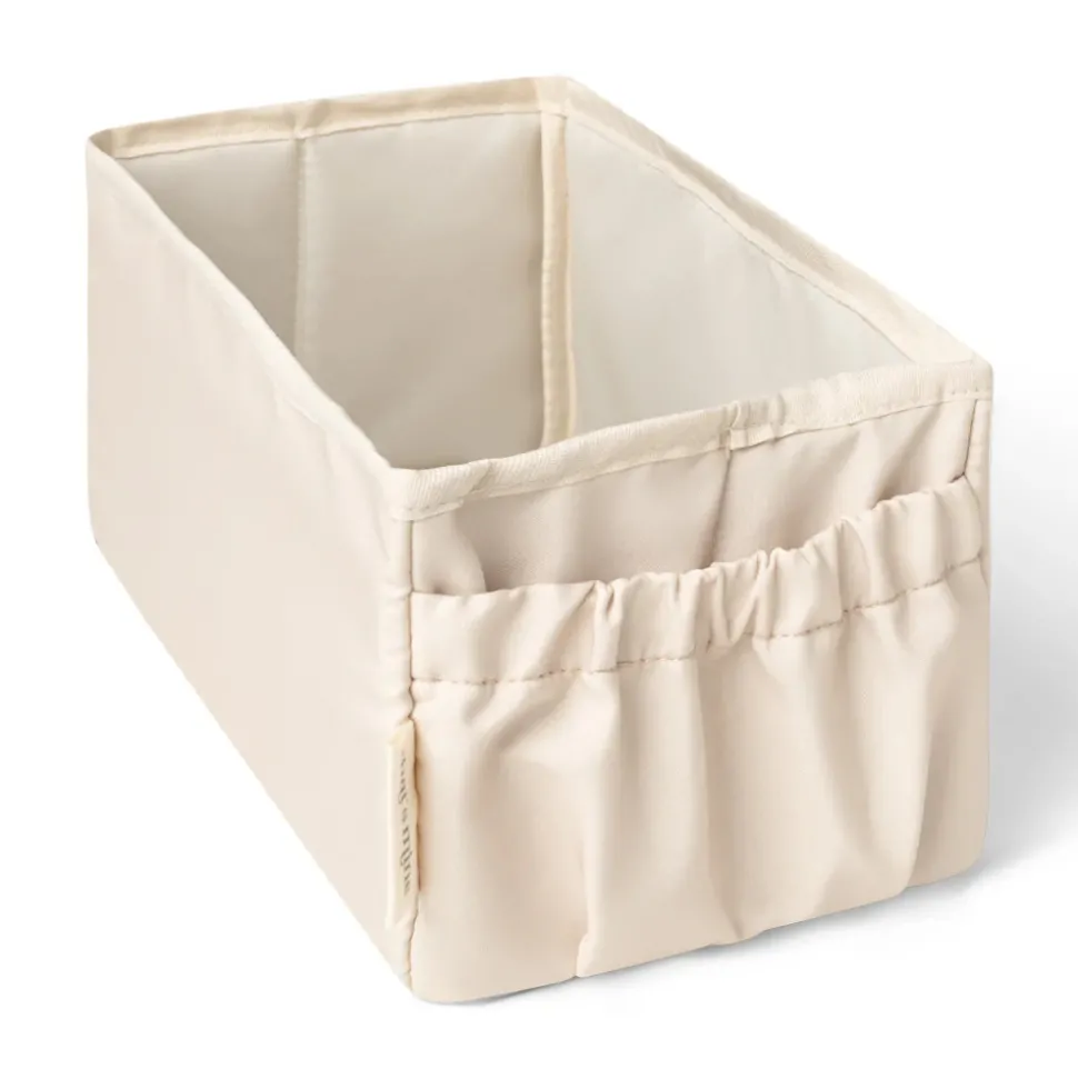Pusleopbevaringskassen gør det nemt at organisere de ting man har brug for under pusletid. Kassen er perfekt til opbevaring af bleer, cremer, stofbleer og andre pusle nødvendigheder. Opbevaringskassen består af et stort rum samt en lomme i enden. Når du ikke bruger kassen og vil spare plads, kan du åbne bunden og tage den hårde bund ud og folde den sammen. Vask: Tåler ikke maskine vask, tør blot af med en fugtig klud. Længde: 32 cm / Bredde: 15 cm / Højde: 13 cm