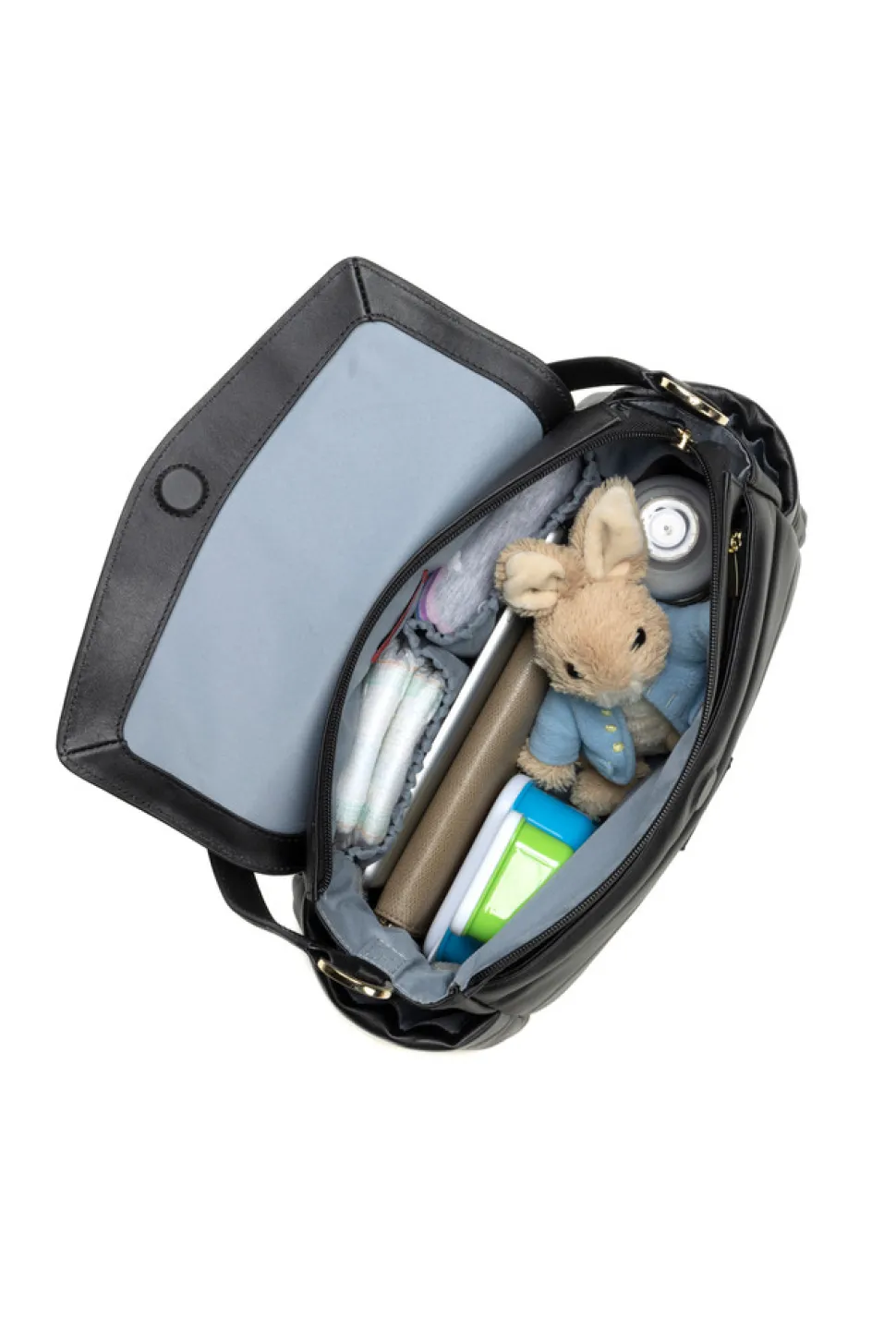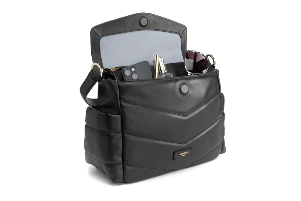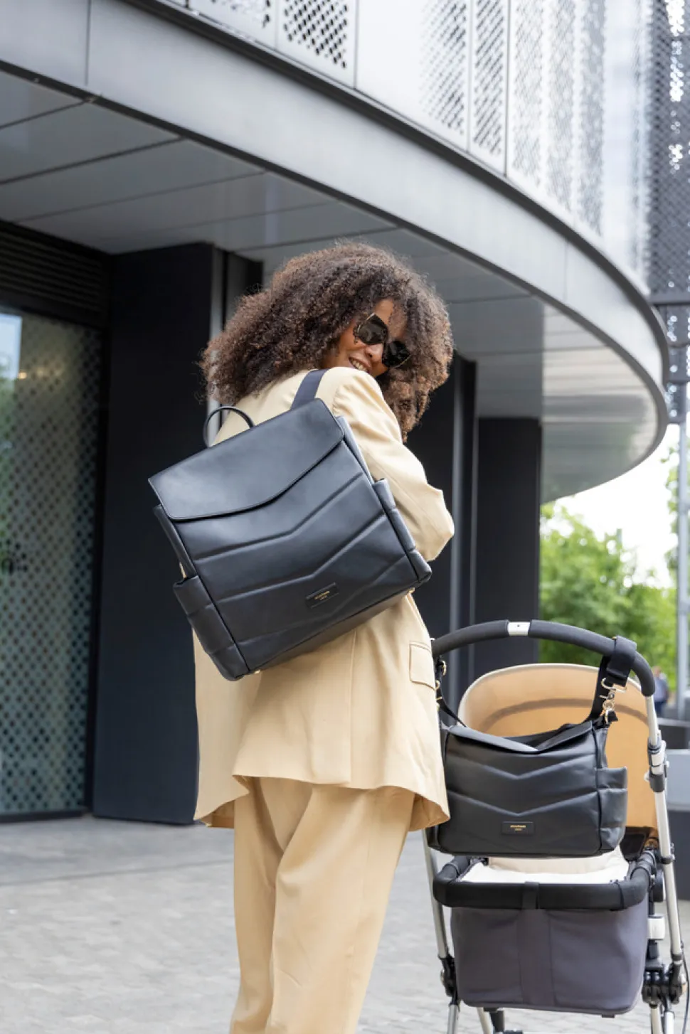 Aria er en meget luksuriøs og komplet pusletaske i 100% rent blødt okselæder. Perfekt til stilfulde forældre på farten. Den har et klassisk design og fungerer også perfekt som barnevognstaske med skulderrem i læder. Den har moderne quiltede detaljer samt aftagelig lang rem med indbygget patenteret barnevognsvelcro, der gør det let at fastgøre tasken til barnevognstyret for ekstra bekvemmelighed. Giv dit forældrelook et løft med denne eksklusive must-have designer pusletaske.