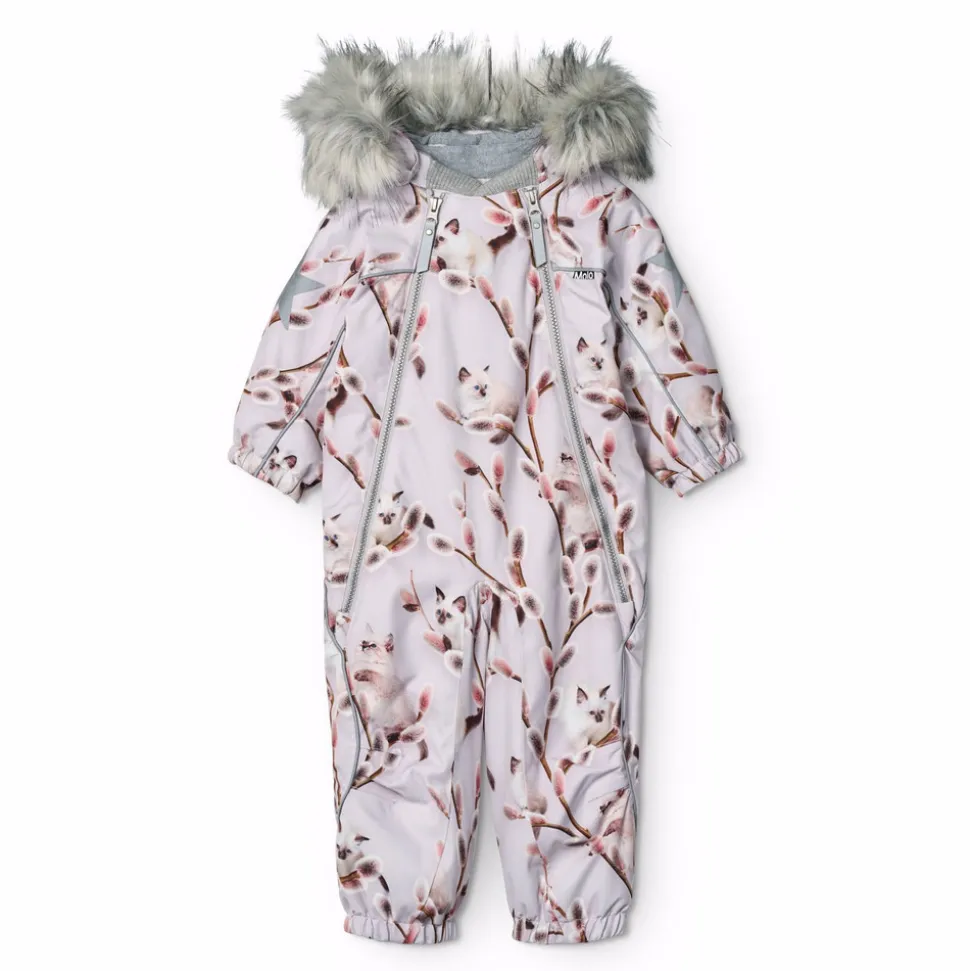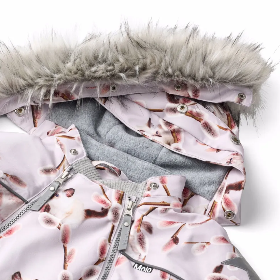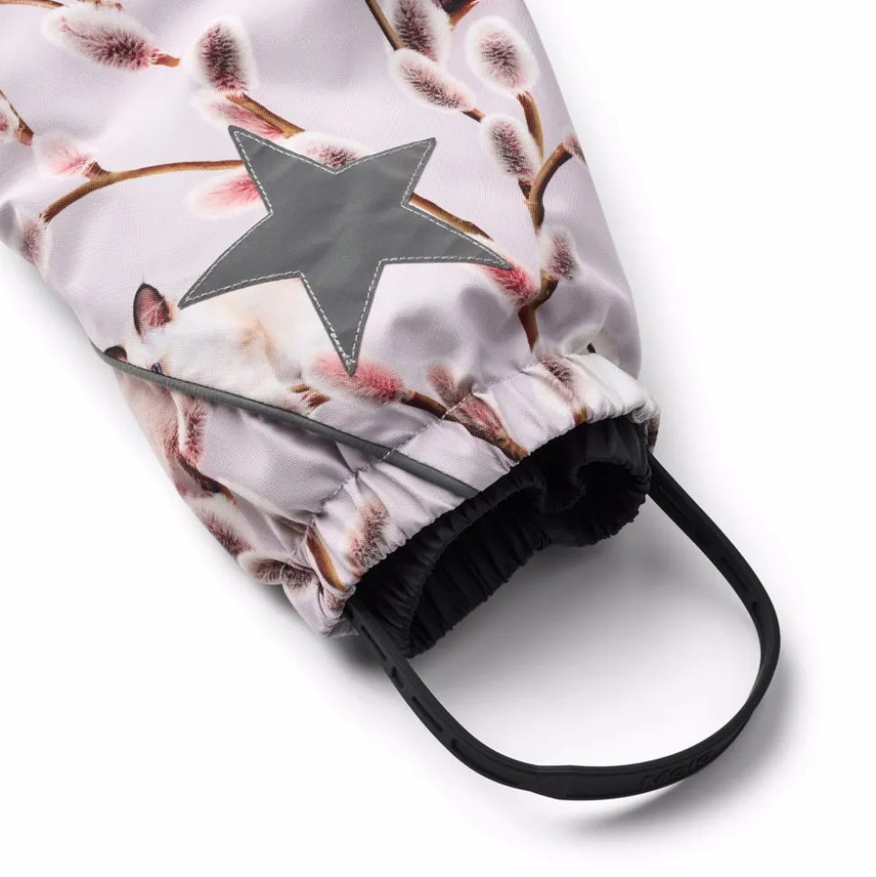Elastik i lænden samt ved ærme- og benåbninger holder sne, regn og vind effektivt ude. Refleksbånd langs sidesømmene, rundt om hætten og to store stjerner på benene sikrer god synlighed i trafikken. Indvendigt er dragten foret med blød fleece og isoleret med 3M™ Thinsulate™, som holder barnet varmt – selv på de koldeste dage.