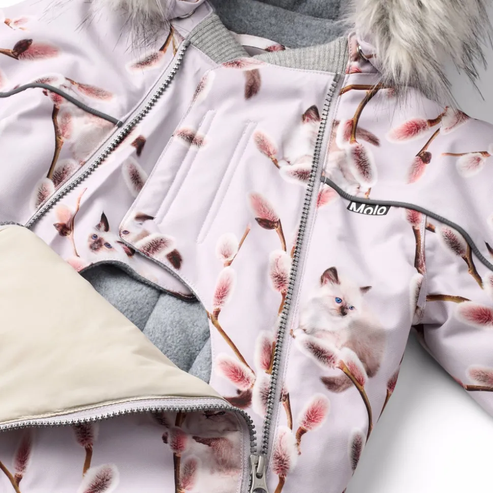 Varm og funktionel flyverdragt til vinterens kolde dage – fremstillet i genanvendt polyester og designet til at modstå både vind og vand. Flyverdragten har en aftagelig, fleeceforet hætte med en blød, aftagelig kant i faux fur. De to lynlåse foran gør det nemt at få dragten af og på, mens en rib hagebeskytter og indvendig vindstolpe beskytter mod kulde og klemte kinder.