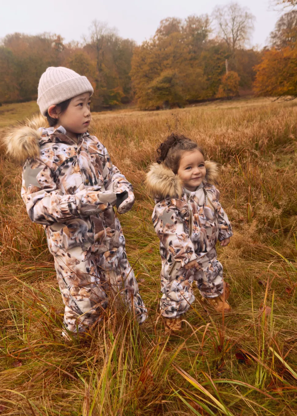 Varm og funktionel flyverdragt til vinterens kolde dage – fremstillet i genanvendt polyester og designet til at modstå både vind og vand. Flyverdragten har en aftagelig, fleeceforet hætte med en blød, aftagelig kant i faux fur. De to lynlåse foran gør det nemt at få dragten af og på, mens en rib hagebeskytter og indvendig vindstolpe beskytter mod kulde og klemte kinder.