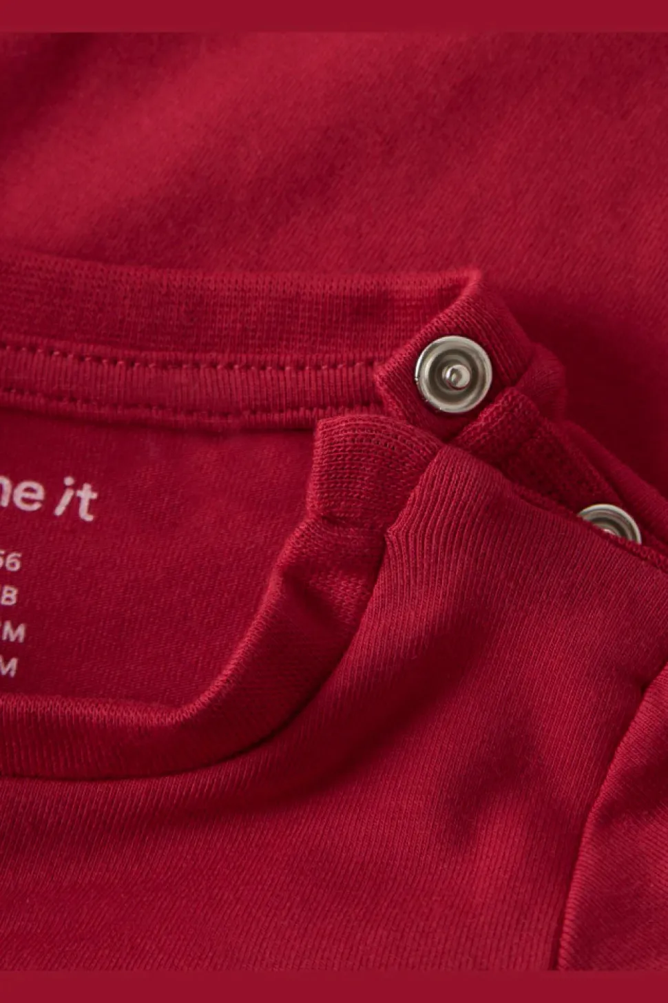 Rajul ls body fra NAME IT er et skønt valg til de mindste, hvor komfort og funktionalitet går hånd i hånd. Bodyen er fremstillet af økologisk bomuld, som føles blødt mod barnets hud og samtidig er et mere bæredygtigt valg. Den langærmede model er ideel til både hverdag og fest, og de praktiske trykknapper gør det nemt at skifte ble. Den flotte Jester Red farve giver et friskt udtryk, og den behagelige pasform sikrer, at barnet kan bevæge sig frit hele dagen. NAME IT er kendt for deres kvalitet og moderne design, og denne body er ingen undtagelse.