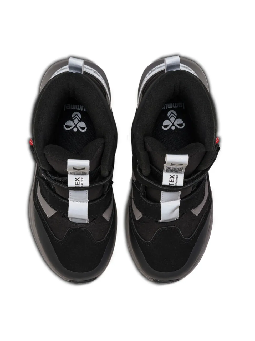 REACH CONQUER SUPER HIGHT TEX JR er en high-top model i ripstopvævet nylon og polyester med kunstlæderbesætninger. En klipbar velcrorem, elastiksnørebånd samt en vævet hælstrop gør det muligt for børn at justere skoen efter behov og giver god stabilitet. Denne lette og åndbare sneakerstøvle er vandafvisende med en skridfast sål og beskyttende hotmelt ved tæerne, hvilket gør den perfekt til udendørs eventyr i al slags vejr. Skoen er nem at få af og på takket være hælens trækstrop.