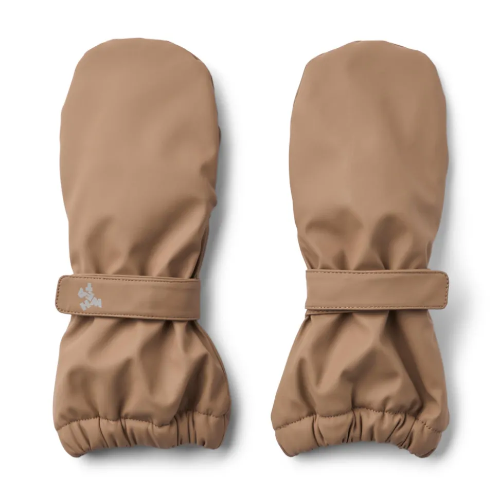 Wheat’s klassiske regnluffer er både behagelige og praktiske at have på. De er vandtætte og har et blødt fleecefoer, som gør dem perfekte til de evigt skiftende sæsoner. Regnlufferne har en justerbar velcrostrop om håndleddet for at sikre, at vanterne bliver på plads. Der er også elastikker ved kanterne, så de kan fastgøres udenpå overtøjets ærmer.