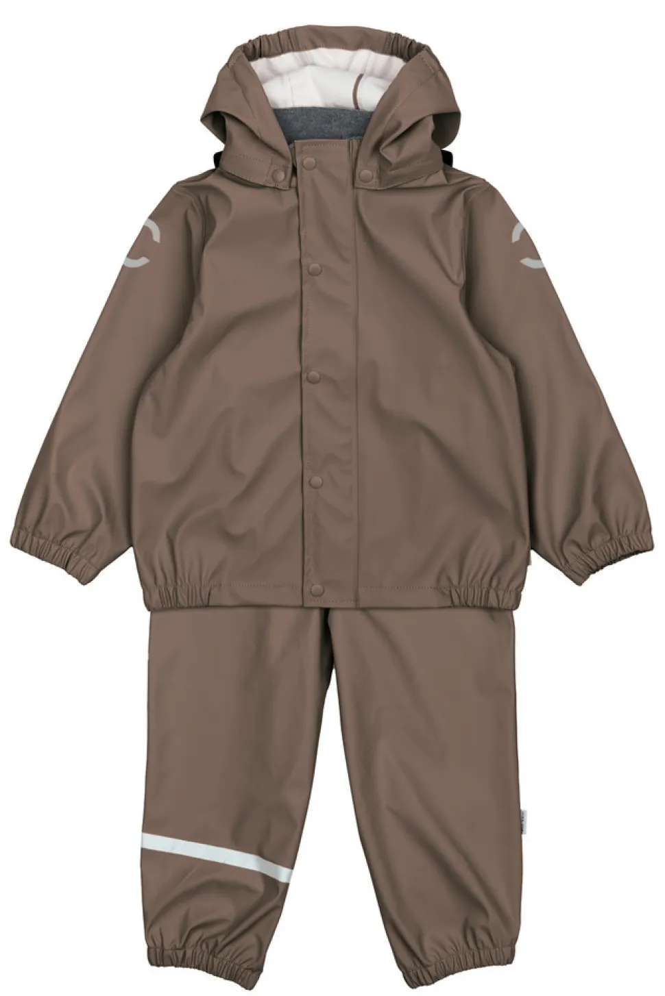 Klassisk PU regntøj med seler fra mikk-line. Sættet består af en vandtæt regnjakke og regnbukser, der begge er lavet af blødt PU-materiale. Regntøjet er skabt til at børn kan trodse regnen og have det sjovt med at hoppe i vandpytter, glide ned ad den våde rutsjebane, lege i den våde sandkasse og meget mere.