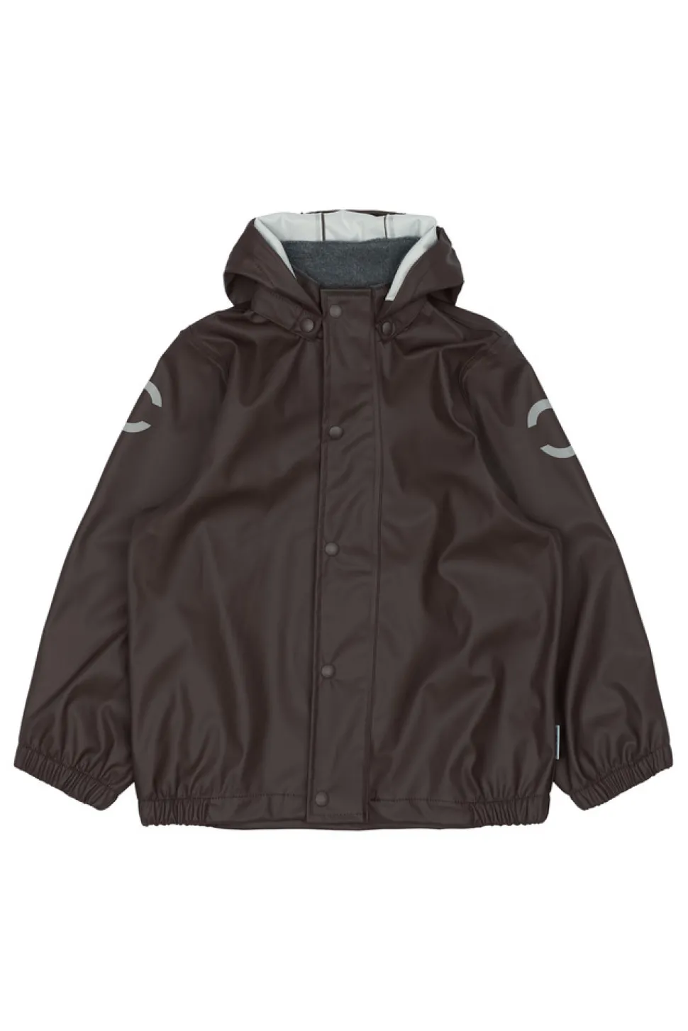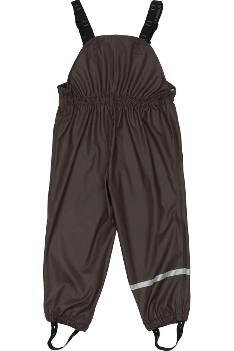 Praktisk og funktionelt recycled regnsæt fra mikk-line, der holder dit barn tørt. Regntøjet er udstyret med refleksdetaljer så dit barn kan færdes sikkert i mørket. Regnsættet er naturligvis både vand- og vindtæt. Sømmene er svejsede, hvilket forhindrer vand i at trænge igennem samlingerne. Buksen har fodstropper, som holder buksen under gummistøvlen. Regnbukserne har justerbare seler, tætsiddende elastik i taljen og et ekstra stykke stof der dækker både foran og bagpå kroppen.