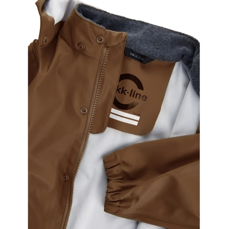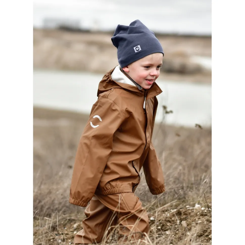 Klassisk PU regntøj uden seler fra mikk-line. Sættet består af en vandtæt regnjakke og regnbukser, der begge er lavet af 100% genanvendt og blødt PU-materiale. Regntøjet er skabt til at børn kan trodse regnen og have det sjovt med at hoppe i vandpytter, glide ned ad den våde rutsjebane, lege i den våde sandkasse osv. Placer de justerbare fodstropper under støvlerne, for at holde fødderne tørre og undgå at bukserne glider op. Buksernes taljeomkreds kan tilpasses efter behov, og så har sættet har et indvendigt navneskilt med plads til mere end ét navn, så giv det gerne videre, så endnu et barn kan få glæde af det.