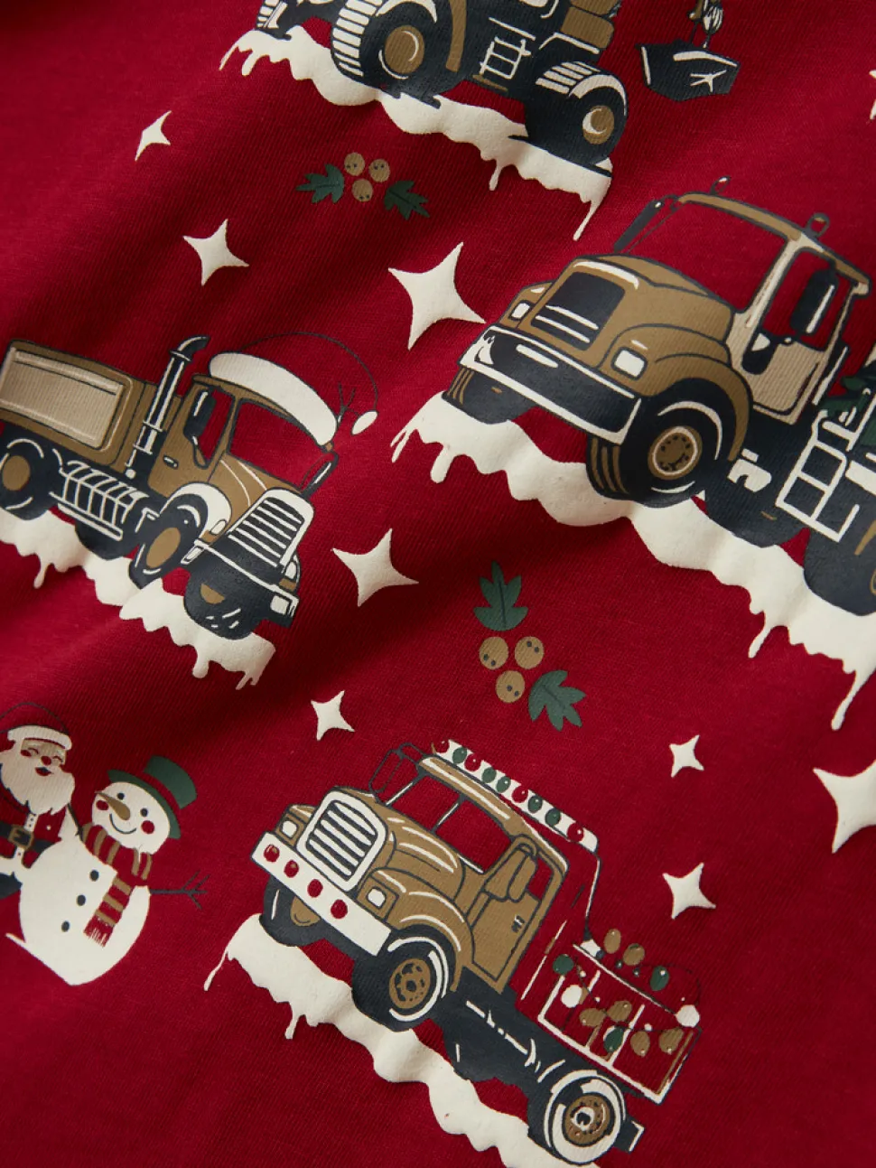 Fejr juletiden med sjove og festlige styles, der spreder glæde og lykke overalt, hvor dit barn færdes. Jersey er et let og elastisk stof med en blød overflade og inderside, der giver en behagelig fornemmelse og bevægelsesfrihed.