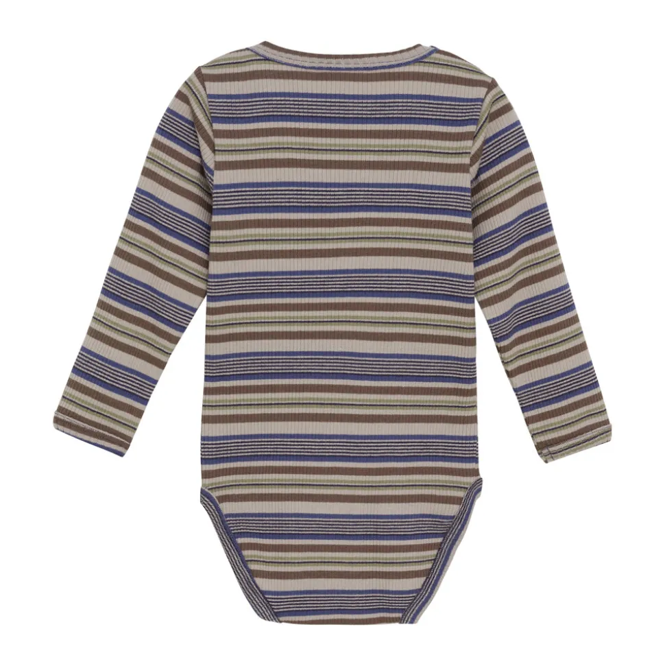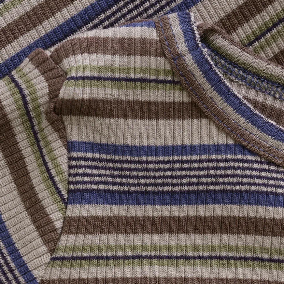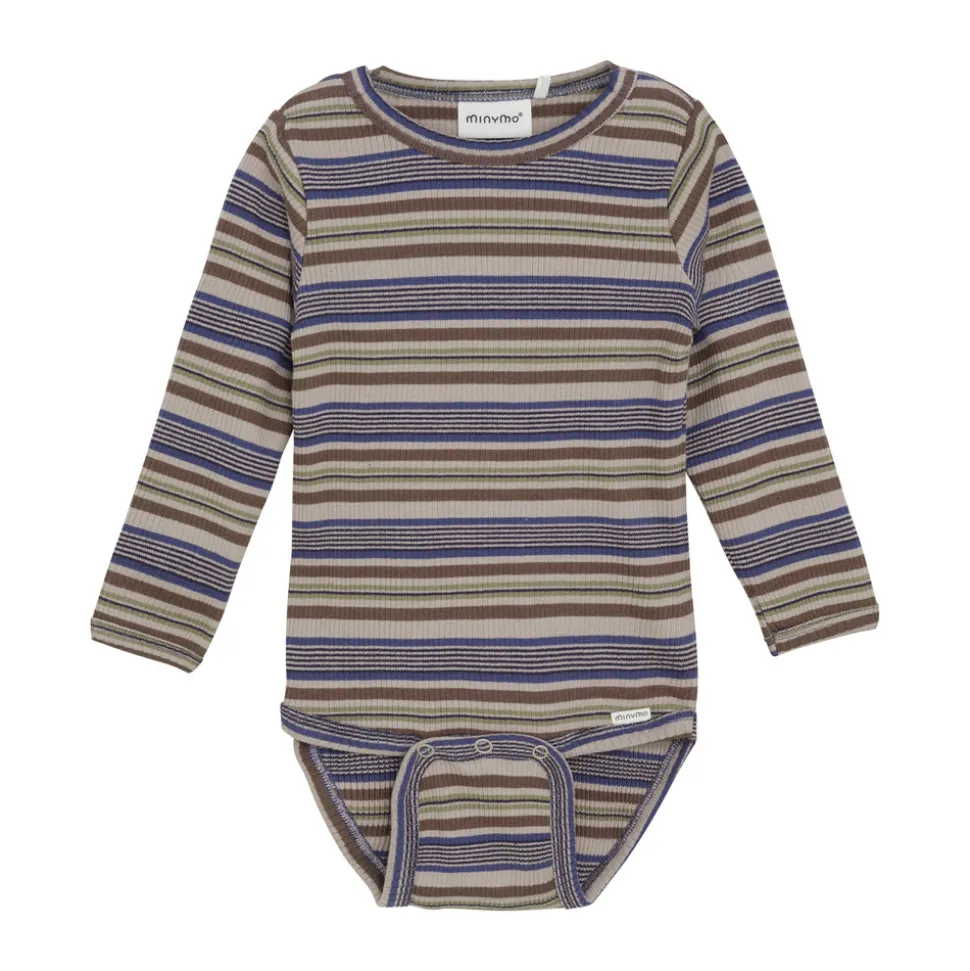 Denne fine stribede body fra Minymo kombinerer funktionalitet og mode med sit klassiske ribdesign og tidløse striber. Den ribbede tekstur giver en behagelig pasform, mens det enkle udtryk gør den nem at style til både hverdag og særlige lejligheder.