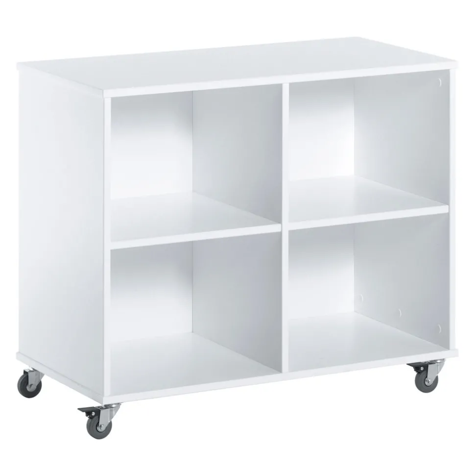 Rumdeleren i størrelse 62,5×69 cm fra Hoppekids er en praktisk reol med fire store rum og hjul med låsefunktion. Det giver god fleksibilitet i indretningen, uden at gå på kompromis med sikkerheden. Rumdeleren er ideel til opbevaring eller som legebord. Den store flade oven på reolen er perfekt til fx byggeklodser, mens rummene kan bruges til udstilling eller som dukkehus. Hjulene gør det nemt at flytte rundt på reolen, så den kan indgå som en aktiv del af legen eller bruges til fleksibel opdeling af rummet. De forreste hjul kan låses, så reolen står fast.